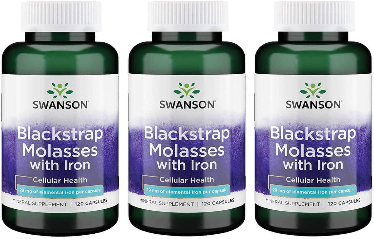 Swanson Blackstrap Molasses - Natural Iron Supplement Promoting Healthy Skin - Premium Wellness Formula - (120 Capsules, 29Mg Each) 3 Pack