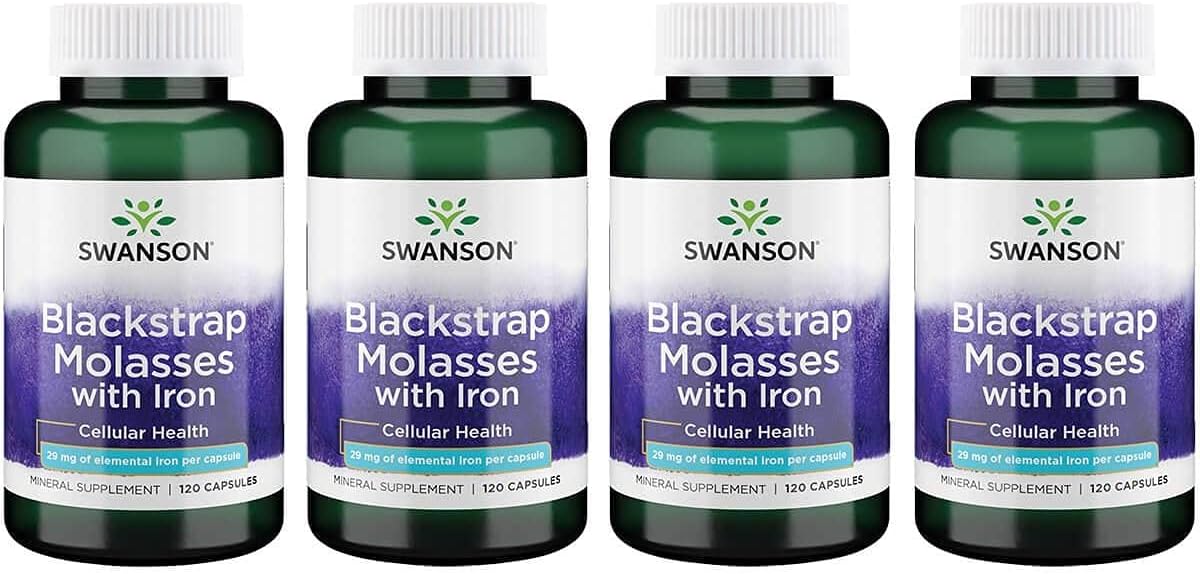 Swanson Blackstrap Molasses - Natural Iron Supplement Promoting Healthy Skin - Premium Wellness Formula - (120 Capsules, 29Mg Each) 4 Pack