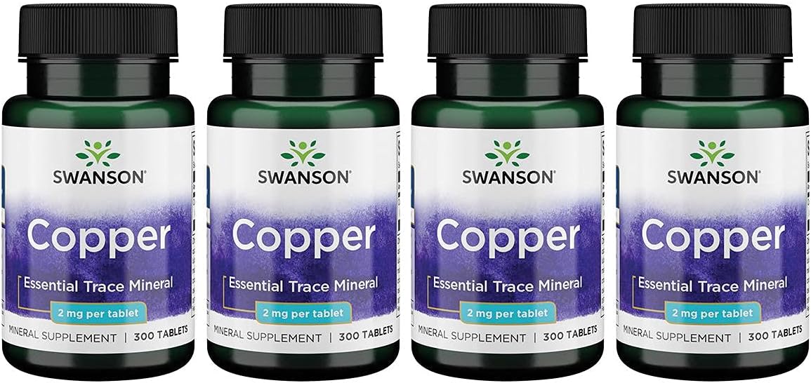 Swanson Copper Mineral Supplement - 2 Mg (Copper Chelate) - Antioxidant, Immune System, And Cell Support - 300 Tablets (4 Pack)