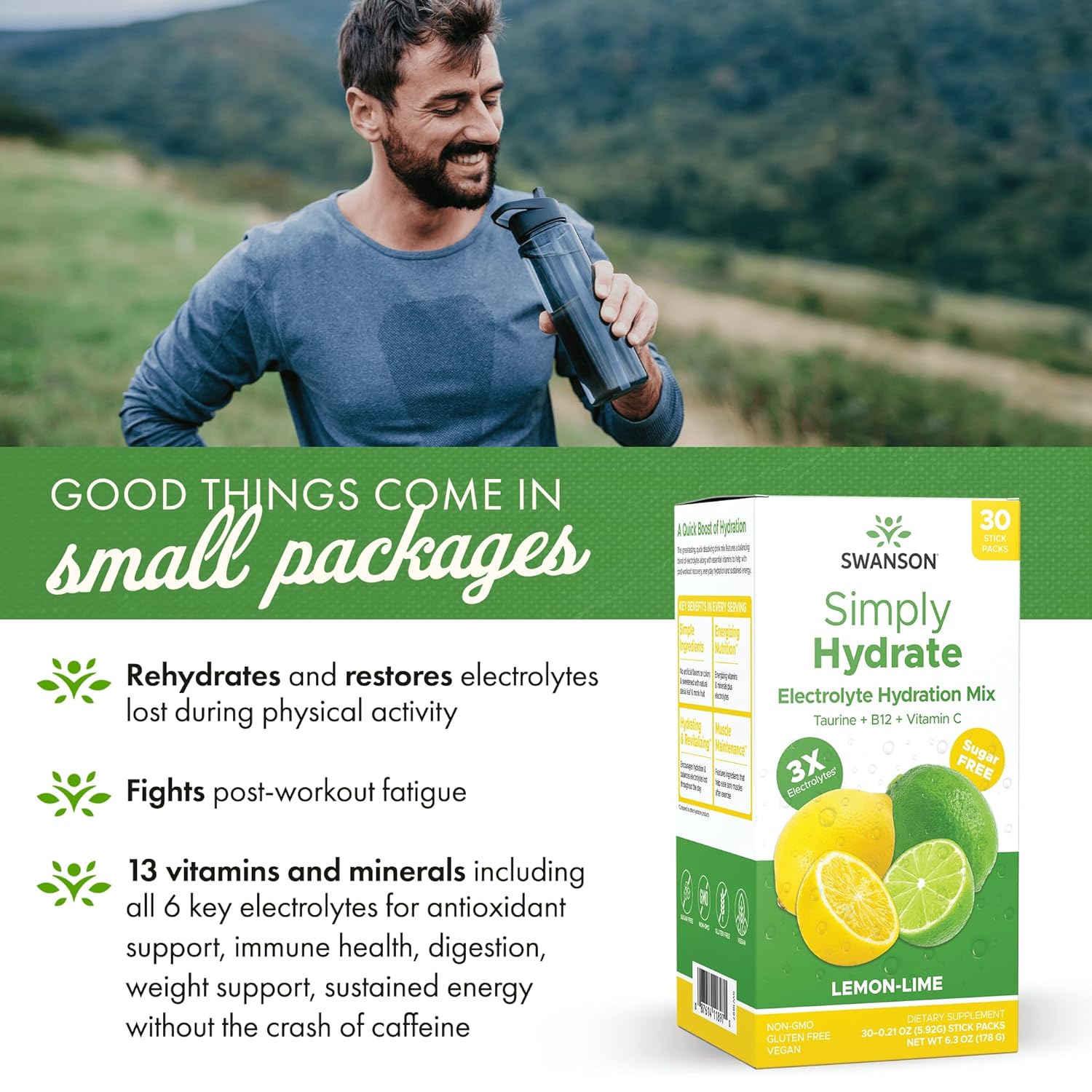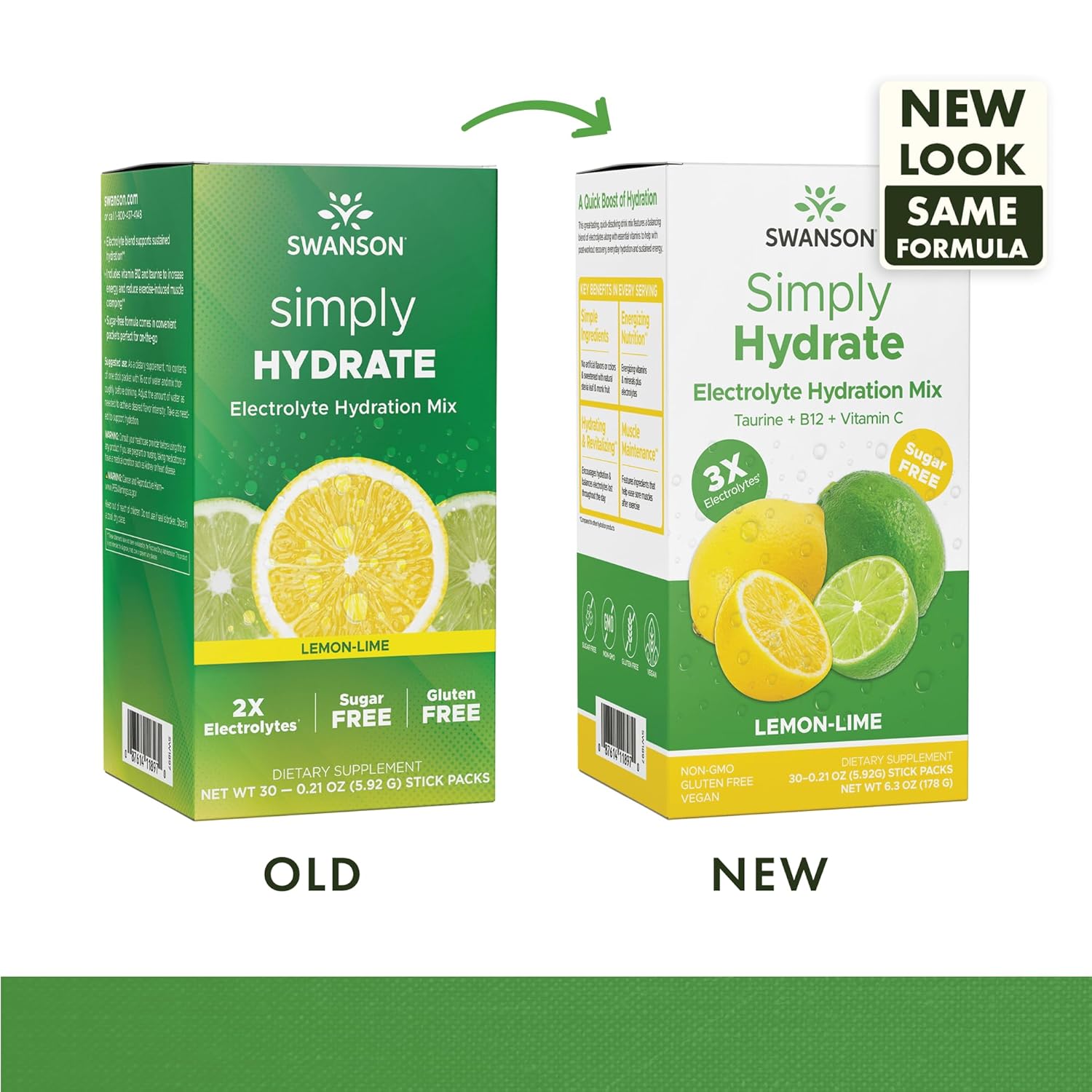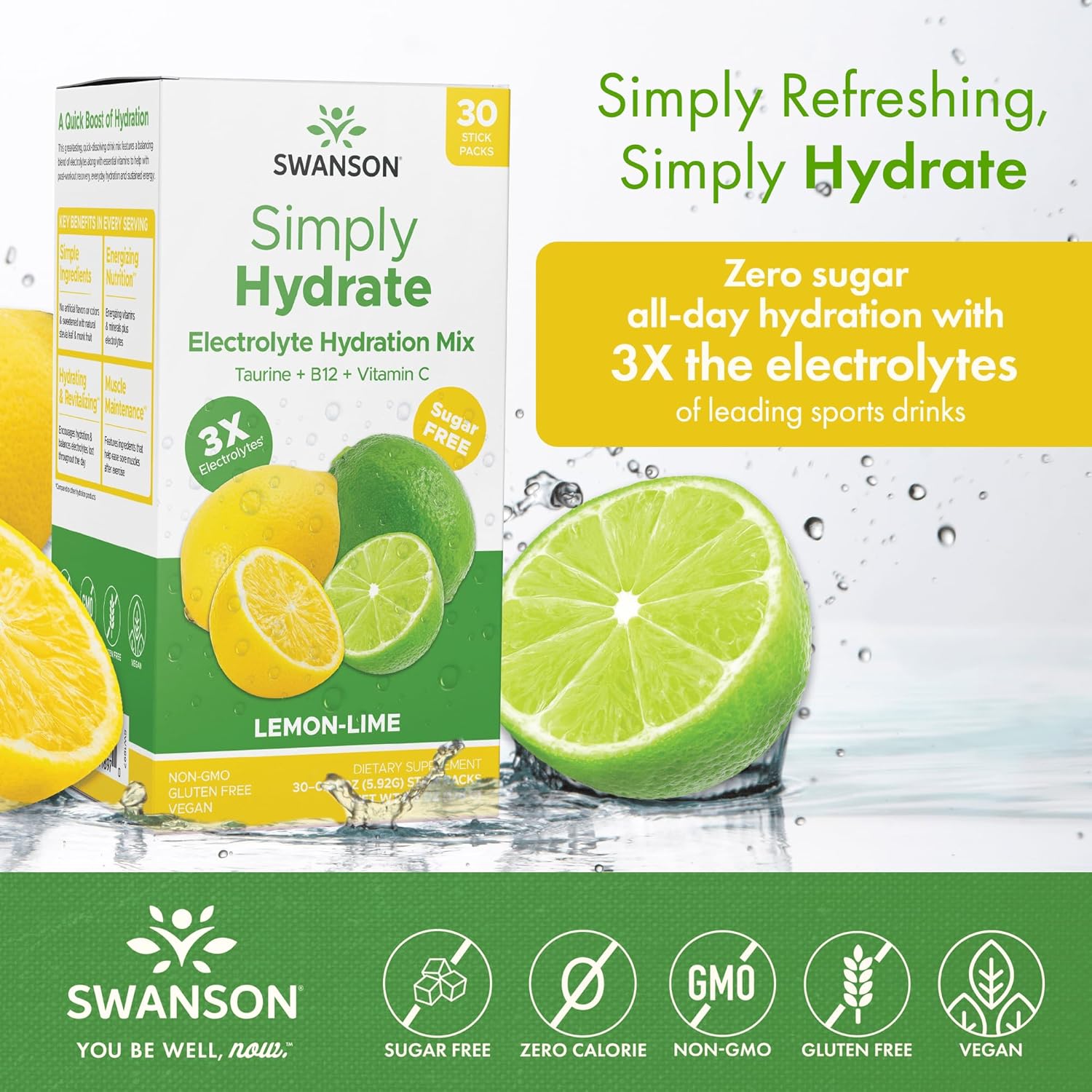 Swanson Simply Hydrate Electrolyte Mix - Sugar-Free Lemon-Lime Flavor - 30 Packets | Advanced Electrolyte Blend | Convenient On-The-Go Solution