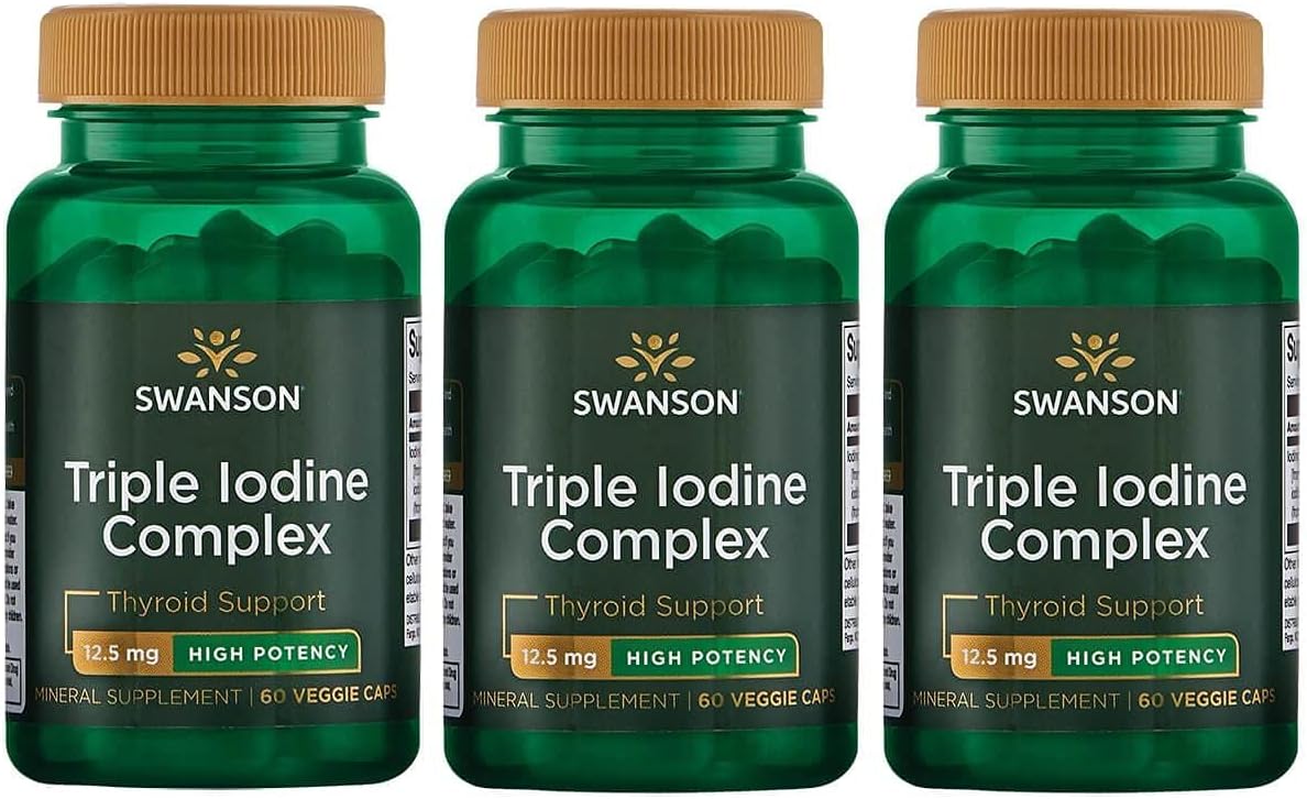 Swanson Triple Iodine Complex-Natural Supplement For Vital Thyroid Support-Promotes Metabolic Function, Increased Red Blood Cell Production, & Heart Health-(60 Veggie Capsules, 12.5Mg Each) 3 Pack