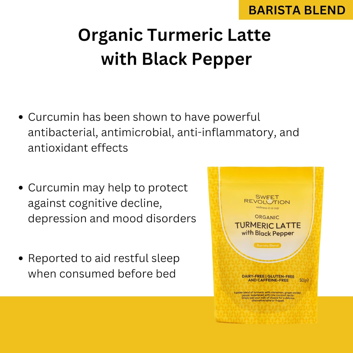 Sweet Revolution Organic Turmeric Latte With Black Pepper Barista Blend (1 X 500G) Catering Pack. Gluten Free, Dairy Free, Refined Sugar-Free