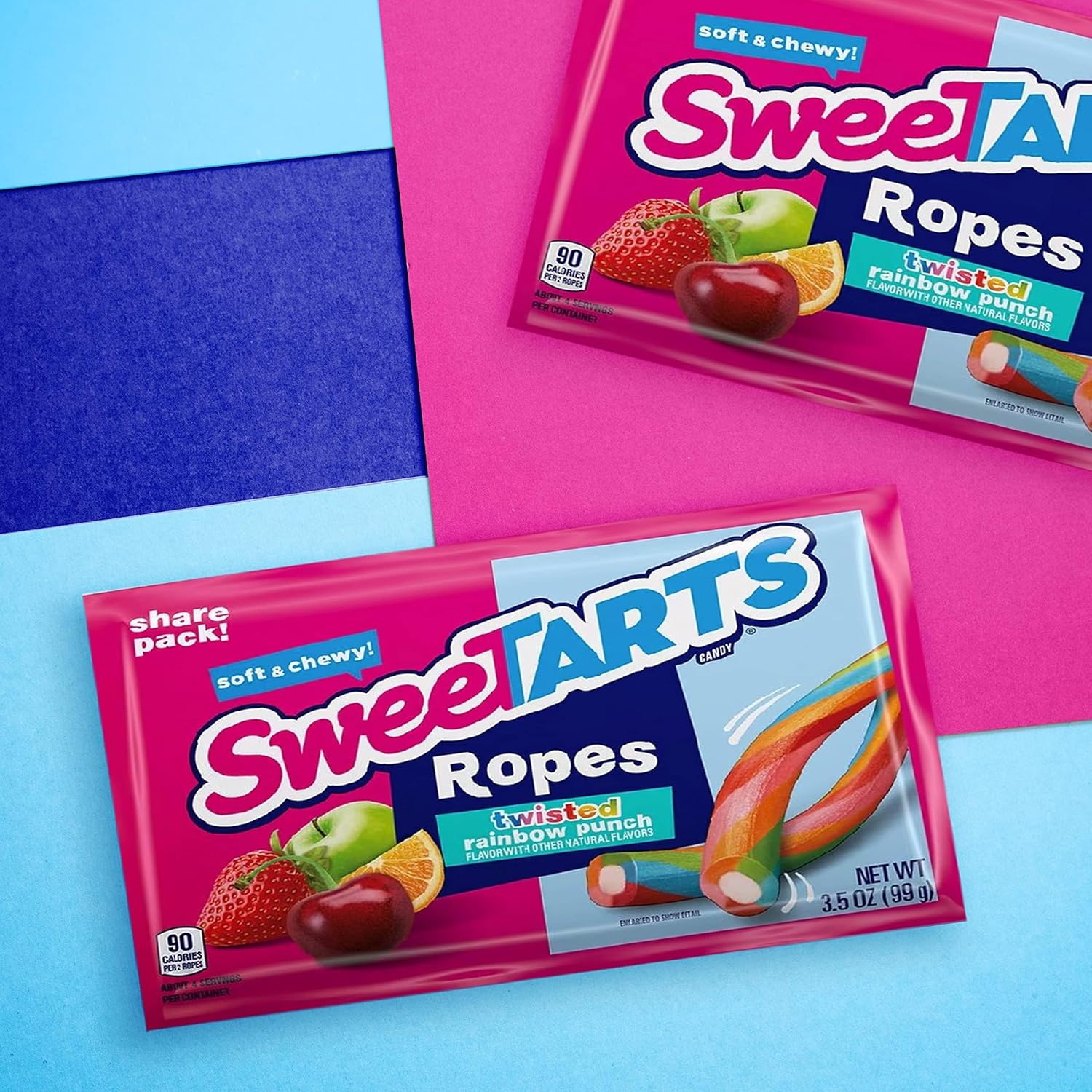 Sweet And Tart β Sweetarts Twisted Rainbow Punch Soft & Chewy Ropes Are Delightfully Sweet And Delicately Tart. This Box Contains Twelve 3.5-Ounce Packages Of Sweetarts Twisted Rainbow Punch Soft & Chewy Ropes. Each Soft And Chewy Rope Is A Bendable Fusion Of Fun β Chewy With A Tart Fruit Punch Flavor Mix Filling. This Pack Includes The Perfect Amount To Share With Friends And Loved Ones. Sweetarts Twisted Rainbow Punch Soft & Chewy Ropes Are A Dynamic Combination, Releasing A Sweet And Tantalizingly Tangy Sensation For Your Tastebuds
