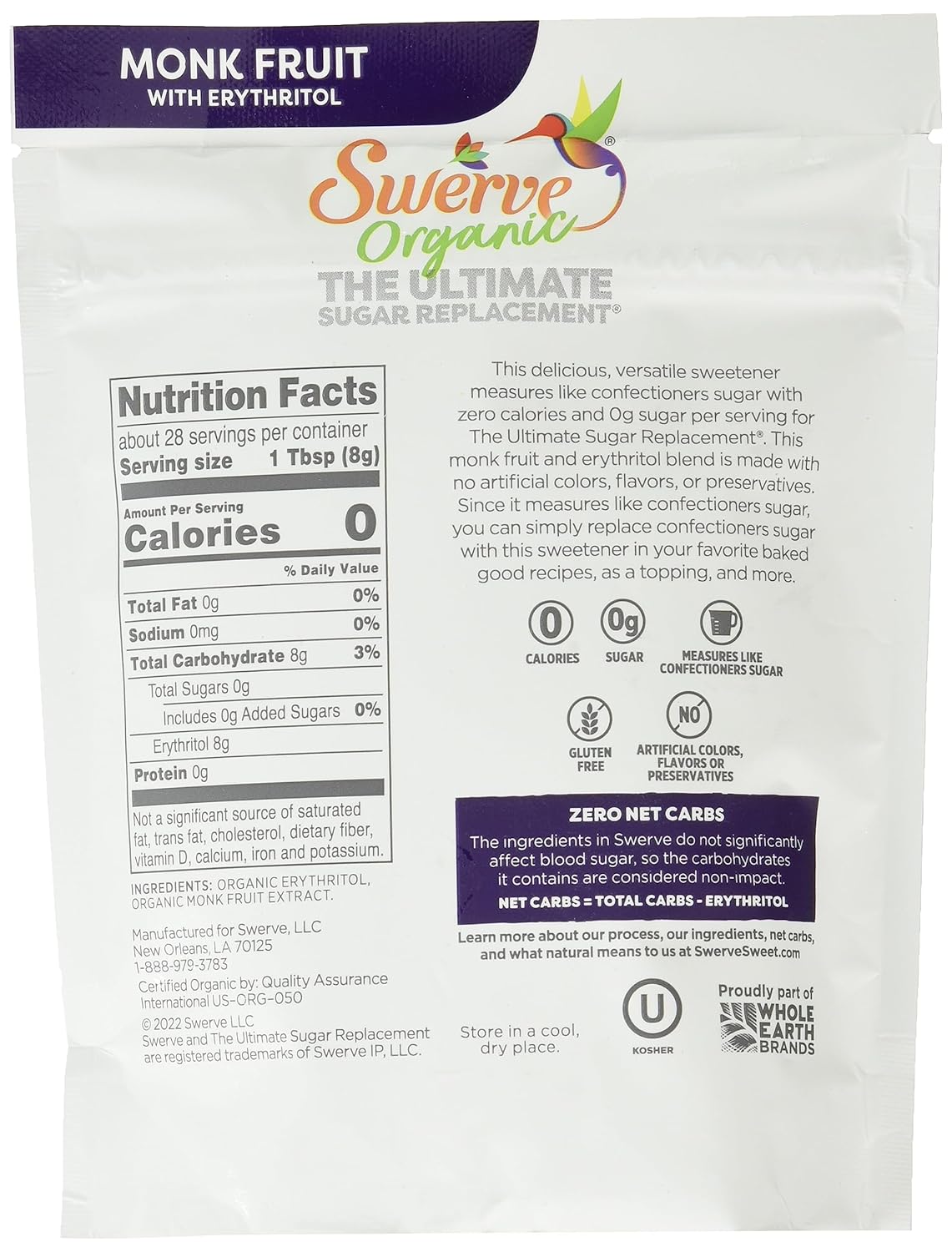 Recreate Your Favorite Desserts And Drinks Guilt-Free With Swerve Sugar Replacement Staples.. Sweet And Delicious, Swerve Sweeteners Taste Just Like Sugar Without A Bitter Aftertaste. With A 1:1 Measurement Of Sugar, They'Re Incredibly Easy To Use. Perfect For Icing, Frosting And Dusting, Confectioners Swerve Has A Super-Fine Texture That Also Works Great For Glazes, Puddings And Curds. Ideal For Keto And Low-Carb Diets, These Guilt-Free Sugar Substitutes Let You Enjoy The Flavors You Crave Without The Calories, Carbs, And Sugar!
