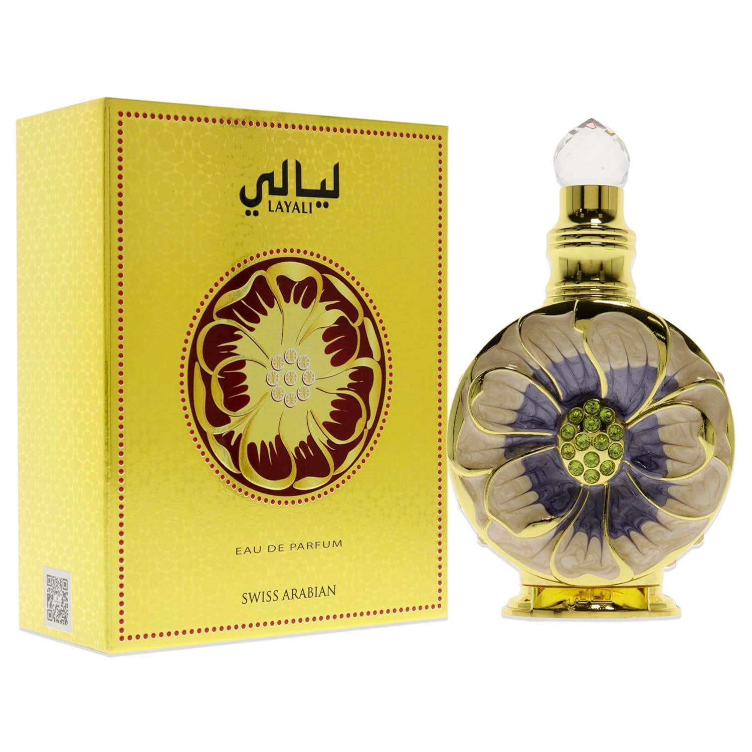 About this item LAYALI: YOUR NEW SIGNATURE SCENT. Opens with finest notes of Black Currant and uplifting Orange Flower. The beating heart of the fragrance consists of Ylang Ylang and Rose. Oud and Amber add depth to the aroma and inspire attention. LONG LASTING EAU DE PARFUM QUALITY. The superior, long lasting fragrance essence. Perfect for gift-giving or for wearing in a variety of situations. Formulated for long wearing aroma projection and wearable intensity. A CLASSIC FORMULATION FEATURING OUR UNIQUE FRAGRANCES. A versatile, classic fragrance formula. Best suited for everyday wear and ideal for layering with other fragrances. Carefully crafted ingredients are suitable for those with sensitive skin. THE PERFECT MIX OF CULTURES AND PERFUMES. Carrying a legacy rooted in a blend of Western & Oriental craftsmanship, Swiss Arabian is a brand founded on duality that proudly celebrates the space in which two seemingly opposite worlds come together. AN AROMATIC EXPERIENCE FROM ACROSS THE SEAS. Born from precious beginnings and built on achievements aplenty, our exquisite creations will lead you on an aromatic journey of the senses that culminates in an impeccable moment that enchants forever.  See more product details,LAYALI: YOUR NEW SIGNATURE SCENT. Opens with finest notes of Black Currant and uplifting Orange Flower. The beating heart of the fragrance consists of Ylang Ylang and Rose. Oud and Amber add depth to the aroma and inspire attention,LONG LASTING EAU DE PARFUM QUALITY. The superior, long lasting fragrance essence. Perfect for gift-giving or for wearing in a variety of situations. Formulated for long wearing aroma projection and wearable intensity,A CLASSIC FORMULATION FEATURING OUR UNIQUE FRAGRANCES. A versatile, classic fragrance formula. Best suited for everyday wear and ideal for layering with other fragrances. Carefully crafted ingredients are suitable for those with sensitive skin,THE PERFECT MIX OF CULTURES AND PERFUMES. Carrying a legacy rooted in a blend of Western & Oriental craftsmanship, Swiss Arabian is a brand founded on duality that proudly celebrates the space in which two seemingly opposite worlds come together,AN AROMATIC EXPERIENCE FROM ACROSS THE SEAS. Born from precious beginnings and built on achievements aplenty, our exquisite creations will lead you on an aromatic journey of the senses that culminates in an impeccable moment that enchants forever
