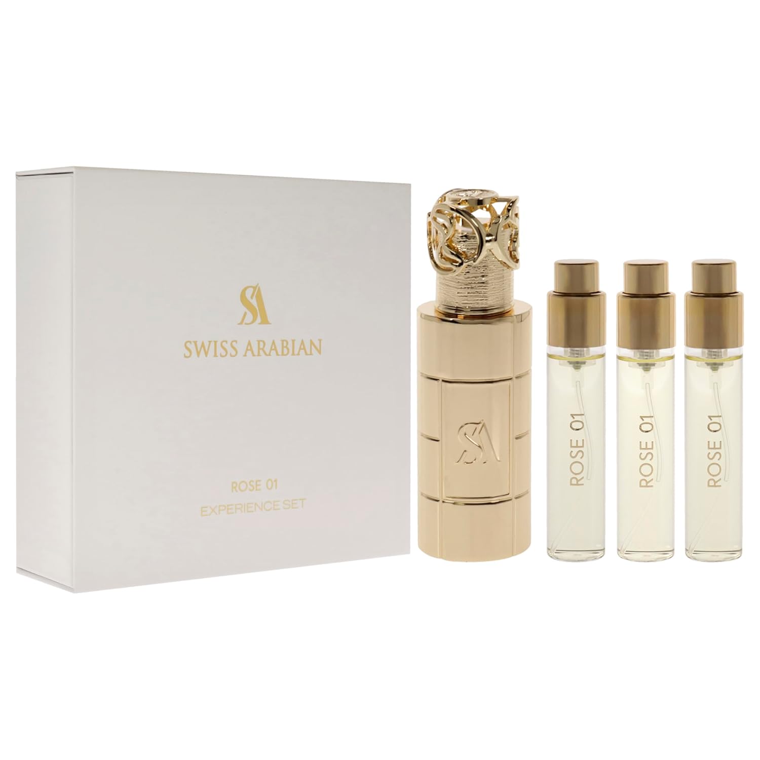 Swiss Arabian Rose 01 Giftset - Arabian Perfumes For Women And Men - Long Lasting Perfume - Floral, Rose, Vanilla Perfume - 3 Bottles With Case - 4 Pc