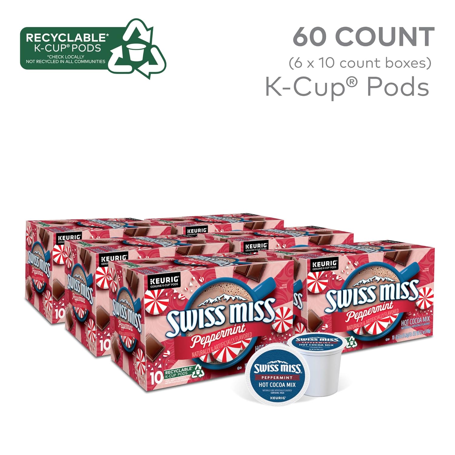 Swiss Miss Peppermint Hot Cocoa, Keurig Single-Serve K-Cup Pods, 60 Count (6 Packs Of 10)