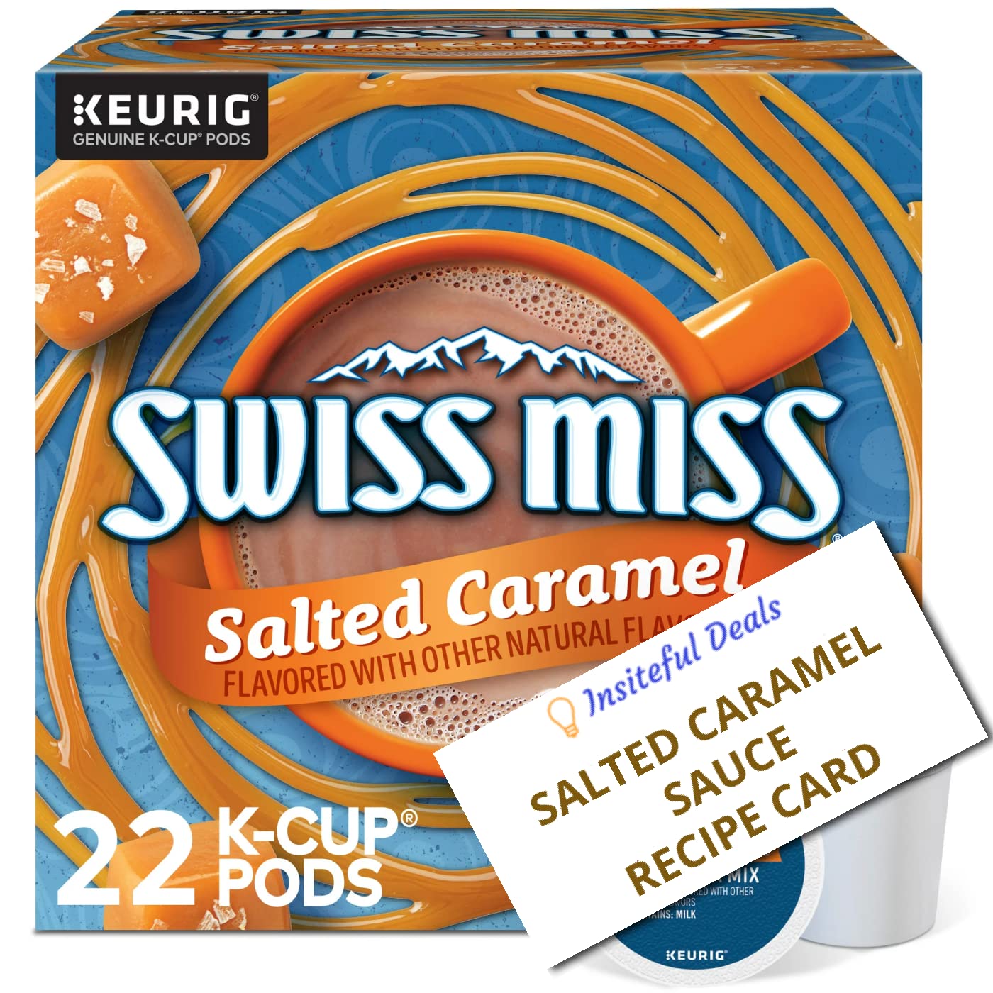 Swiss Miss Salted Caramel Hot Chocolate K Cups & Salted Caramel Sauce Recipe Card Bundle - Single-Serve Hot Cocoa Kcups For Keurig Brewers - 1 Box 22 Count (Ct) Pods And Recipe Card Exclusively From Insiteful Deals