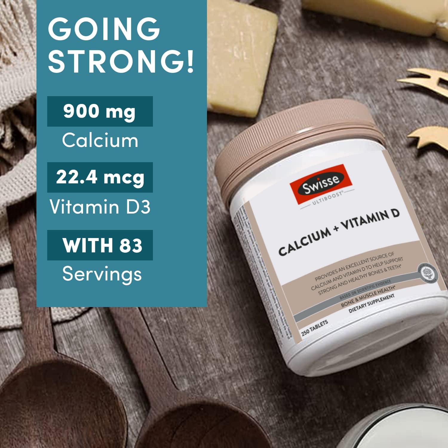Swisse Calcium With Vitamin D | 900Mg | Calcium Citrate & Calcium Carbonate With Vitamin D3 | Calcium Supplement For Women & Men | Bone Strength Support | 250 Tablets