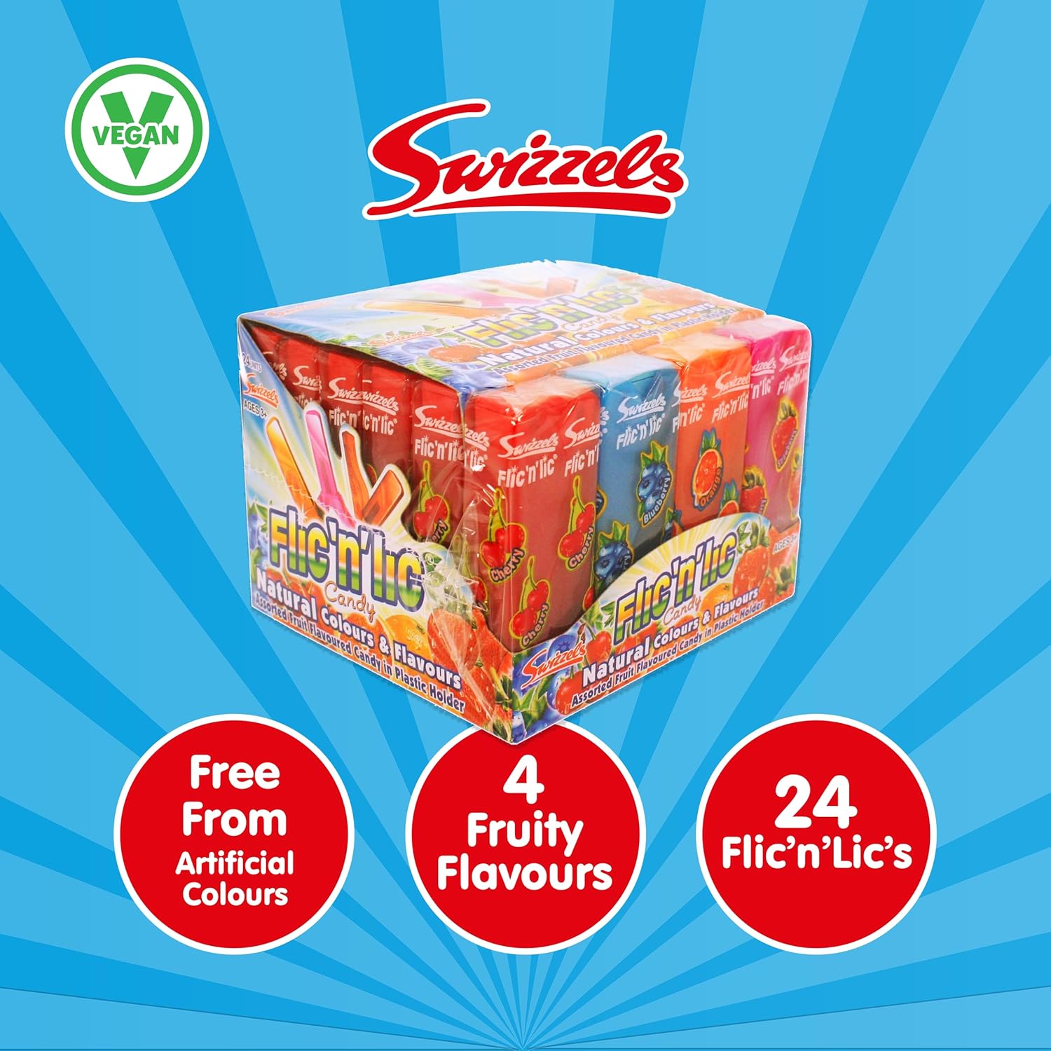 Swizzels Matlow Flic 'N' Lic 24 Pack, Bulk Buy Lollipops For Parties & Events