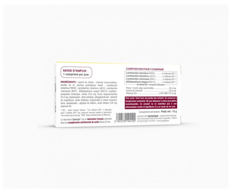 Resistant Tablets Composed Of 4 Lactic Ferments Of 2 Prebiotics Dosed At 20 Billion Cfu* Per Tablet, And Vitamin D Which Contributes To The Normal Functioning Of The Immune System. Lactic Ferments* Are: Lactobacillus Helveticus R0052, Lactobacillus Helveticus Lafti10, Lactobacillus Rhamnosus R0011, Bifidobacterium Longum R00175. *Doesn'T Contain Lactose