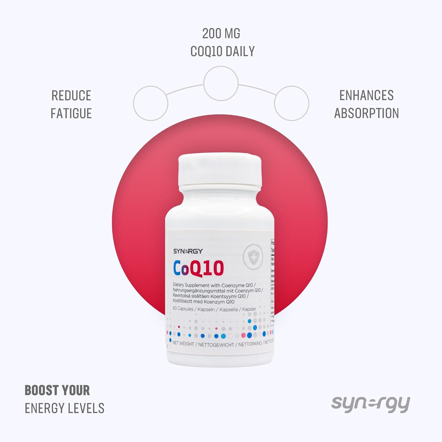 DESCRIPTION : Synergy WorldWide CoQ10 | 200mg Ubiquinone CoQ10 | Energy Production and Cellular Health Supplement | Antioxidant | 60 Capsules