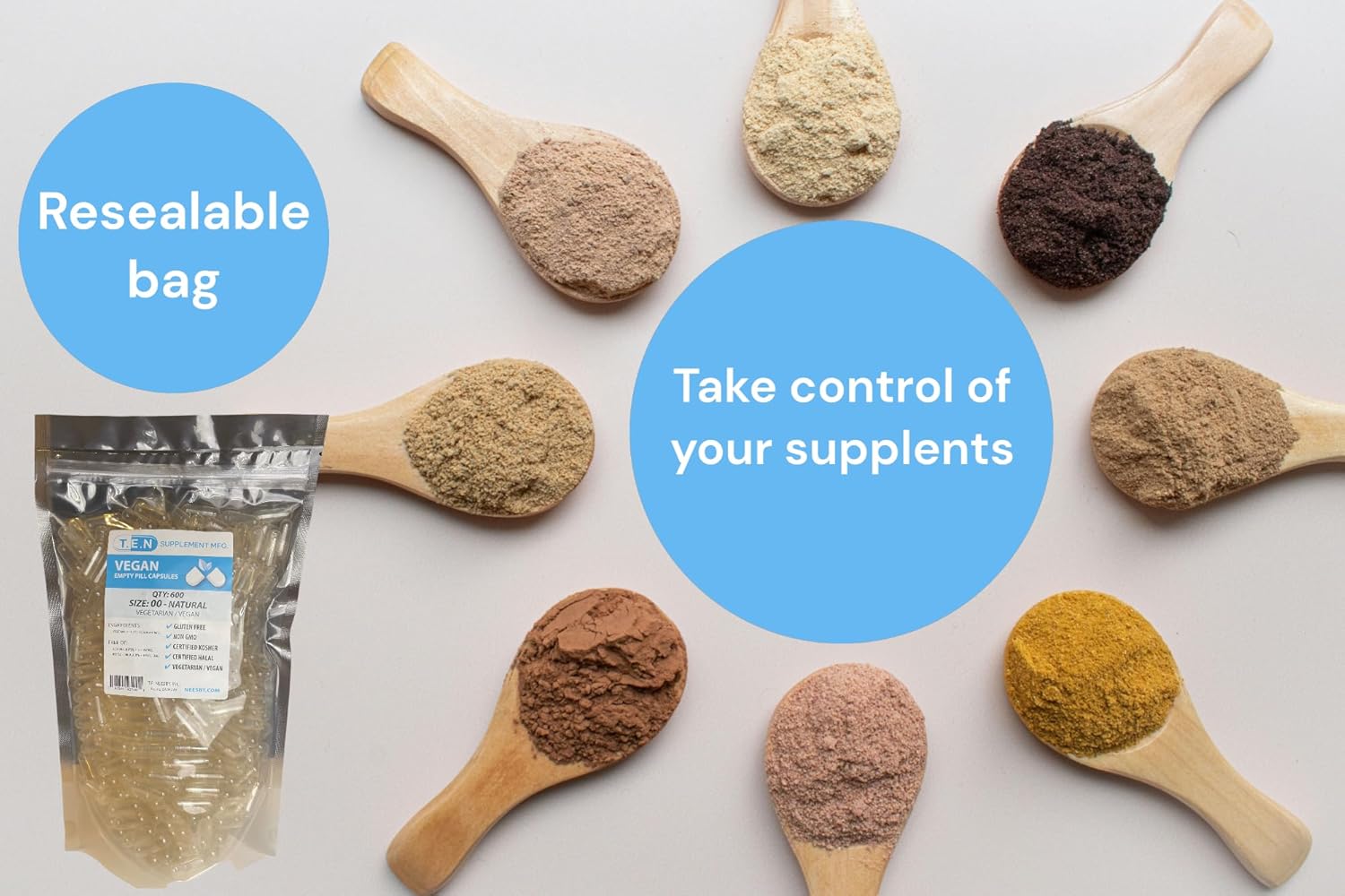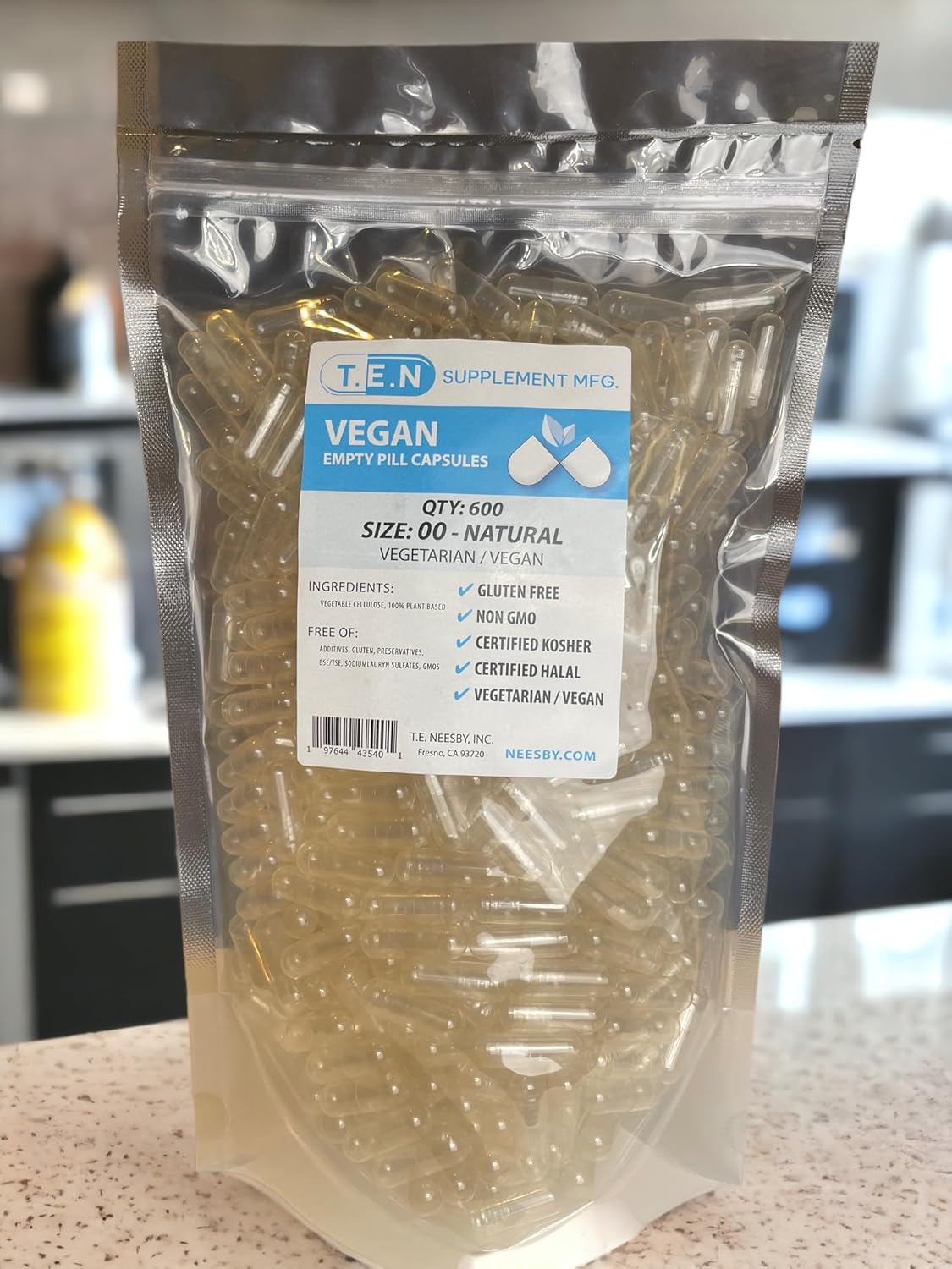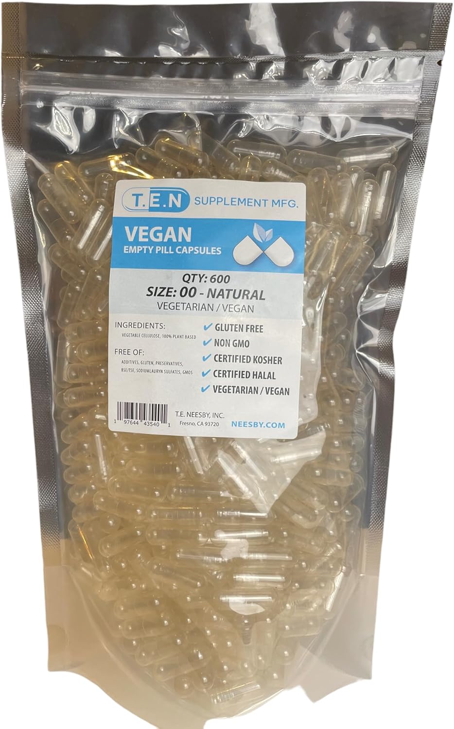 T.E. Neesby Vegan Empty Pill Capsules-Size 00 Pull Apart Caps - 600 Count - Clear Caps - Diy Capsule Filling