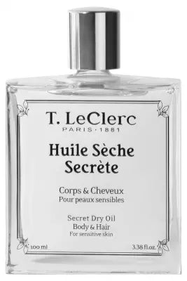 T.Leclerc Secret Dry Oil 100 Ml Is A Real Concentrate Of Benefits For Skin And Hair. Composed Of 5 Plant Oils, Its Formula Is An Asset To Your Daily Beauty Routine: Rice Bran Oil: Soothes, Nourishes And Regenerates The Skin. Sweet Almond Oil: Nourishes Skin And Adds Suppleness And Shine To Hair. Sesame Seed Oil: Softens Skin, Prevents Aging. Apricot Kernel Oil: Softens Skin And Hair, Nourishes, Prevents Skin Aging. Sunflower Seed Oil: Deeply Moisturizes The Skin, Leaving It Soft And Supple. Enriched With Essential Nutrients, It Deeply Nourishes The Skin, Leaving It Soft, Moisturized And Protected. Its Non-Greasy Formula Penetrates Quickly, Leaving A Delicate Veil With A Bewitching Powdery White Iris Fragrance To Accompany You All Day Long. Skin And Hair Are Sublimated, Revealing All Their Natural Beauty. 98% Of Ingredients Are Of Natural Origin. Dermatologically Tested. Vegan. Made In France