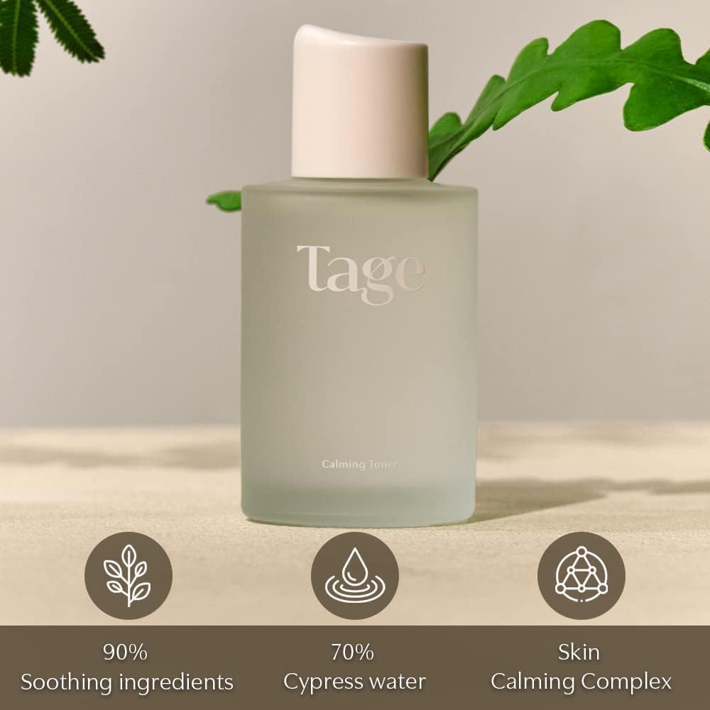 Vegan Calming and Hydrating Toner with 90% soothing ingredients (70% Cypress water+Skin Calming Complex) | Apply Skin Calming Complex (Houttuynia Cordata, Purslane, and Centella Asiatica Extracts)100% Vegan Approved by EVE Vegan France | Not Tested on Animals | All ingredients are EWG green | Dermatologically tested | A skin irritation response rate of 0.00for All skin types (sensitive skin & dry skin) / for All seasons Cypress water with excellent anti-bacterial effect & Houttuynia CordataTage Calming Toner in Cyprest 3.38fl.oz,100ml, Hydrating & Soothing Toner for face with Cypress Water, Not Tested on Animals [France EVE Vegan]