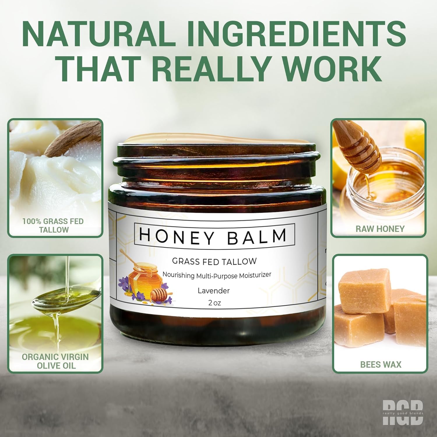 Tallow And Honey Balm, Organic Body Butter, Grass-Fed Beef Tallow For Skin, Soothing All-Natural Moisturizer For Body And Face | Made In Usa - 2 Oz (Lavender)