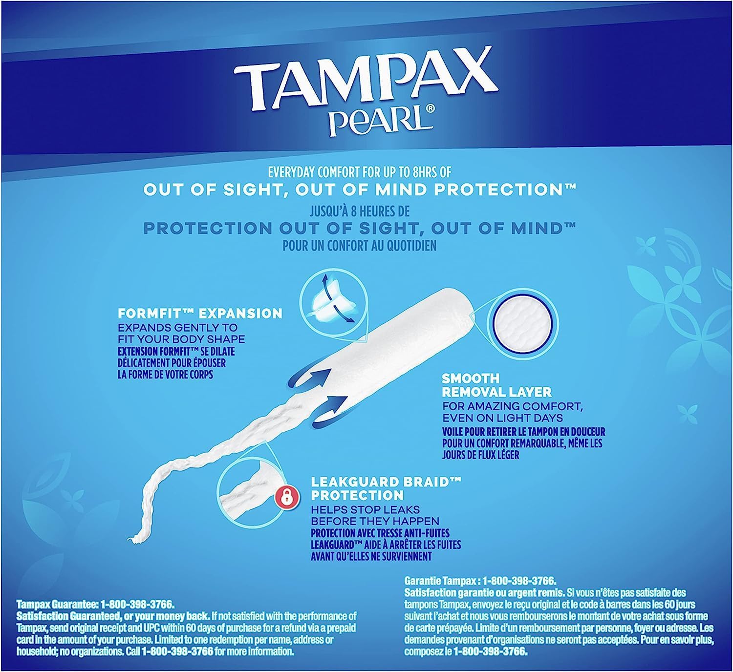 Up To Eight Hours Comfort And Protection Available In Five Absorbencies With Tampax Pearl Tampons