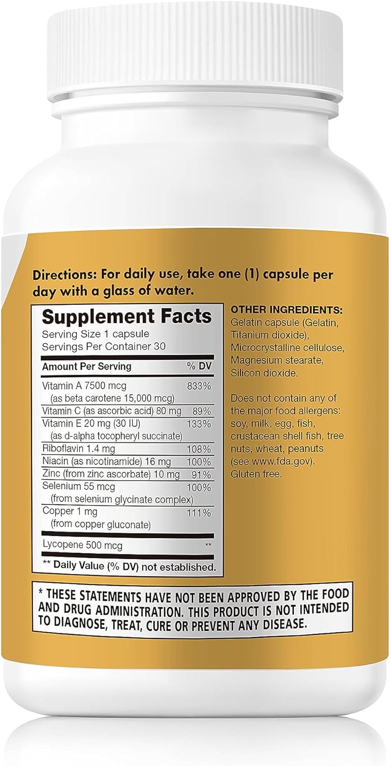 With Beta carotene, Copper, Lycopene, Selenium, vitamins B2, B3, E and Zinc