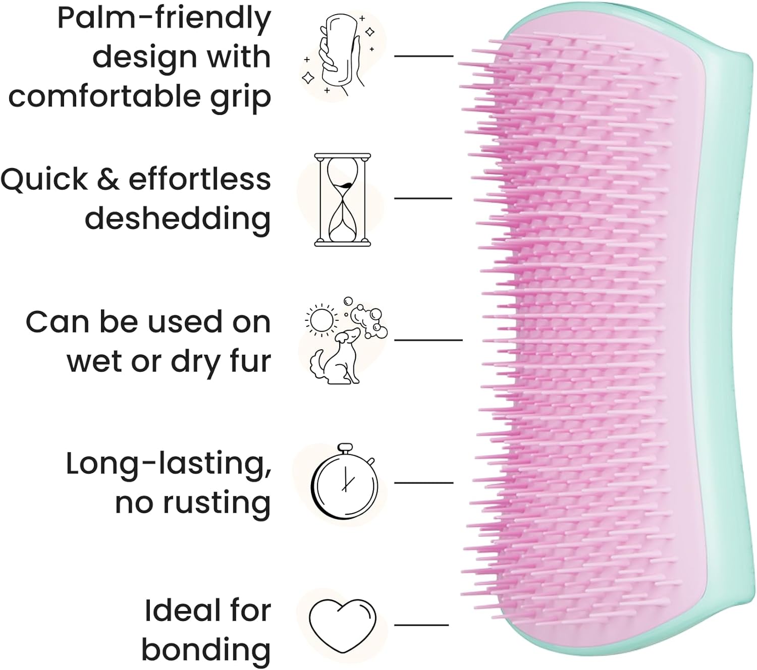 Tangle Teezer | Pet Teezer - Mint & Pink De-Shedding & Dog Grooming Brush - Dry Or Bath Brush