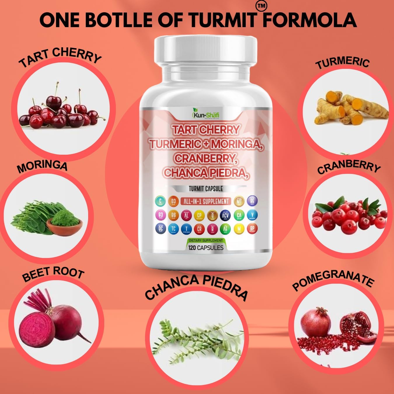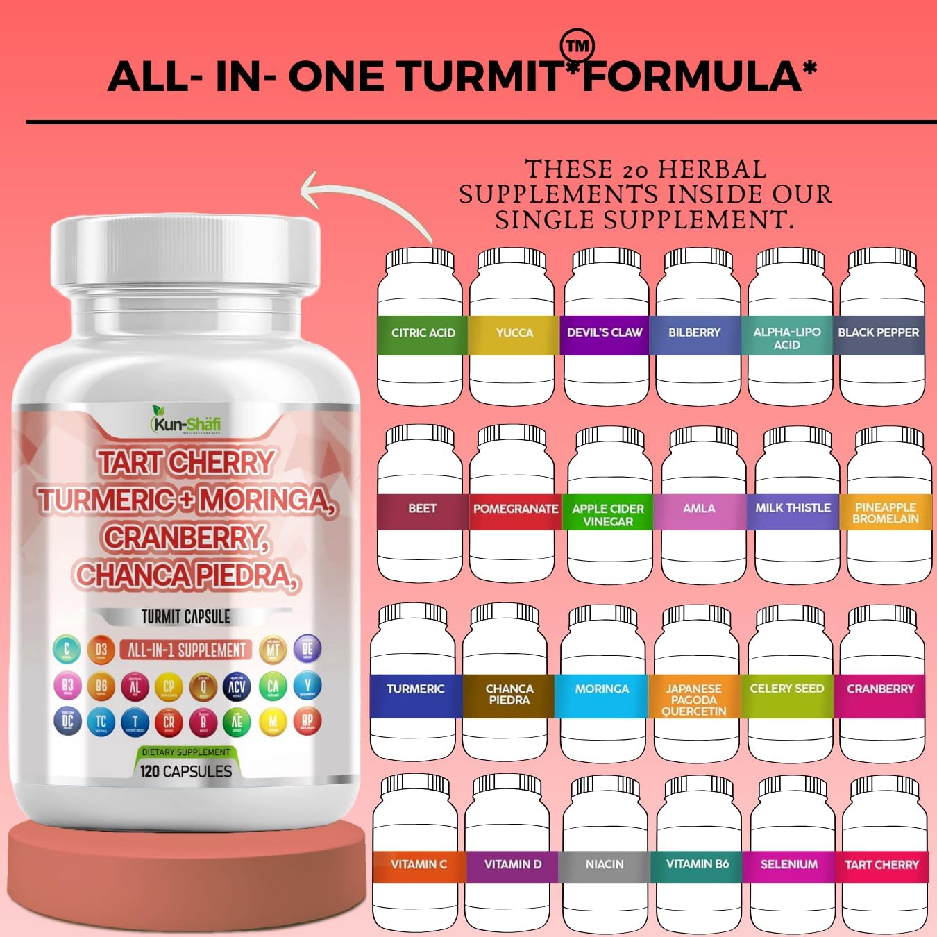Tart Cherry Extract Capsules 20,000Mg With Turmeric 8000Mg Moringa 4000Mg Cranberry 2000Mg Chanca Piedra Celery Quercetin Acv Pomegranate L Selenomethionine - Uric Levels - 120 Ct