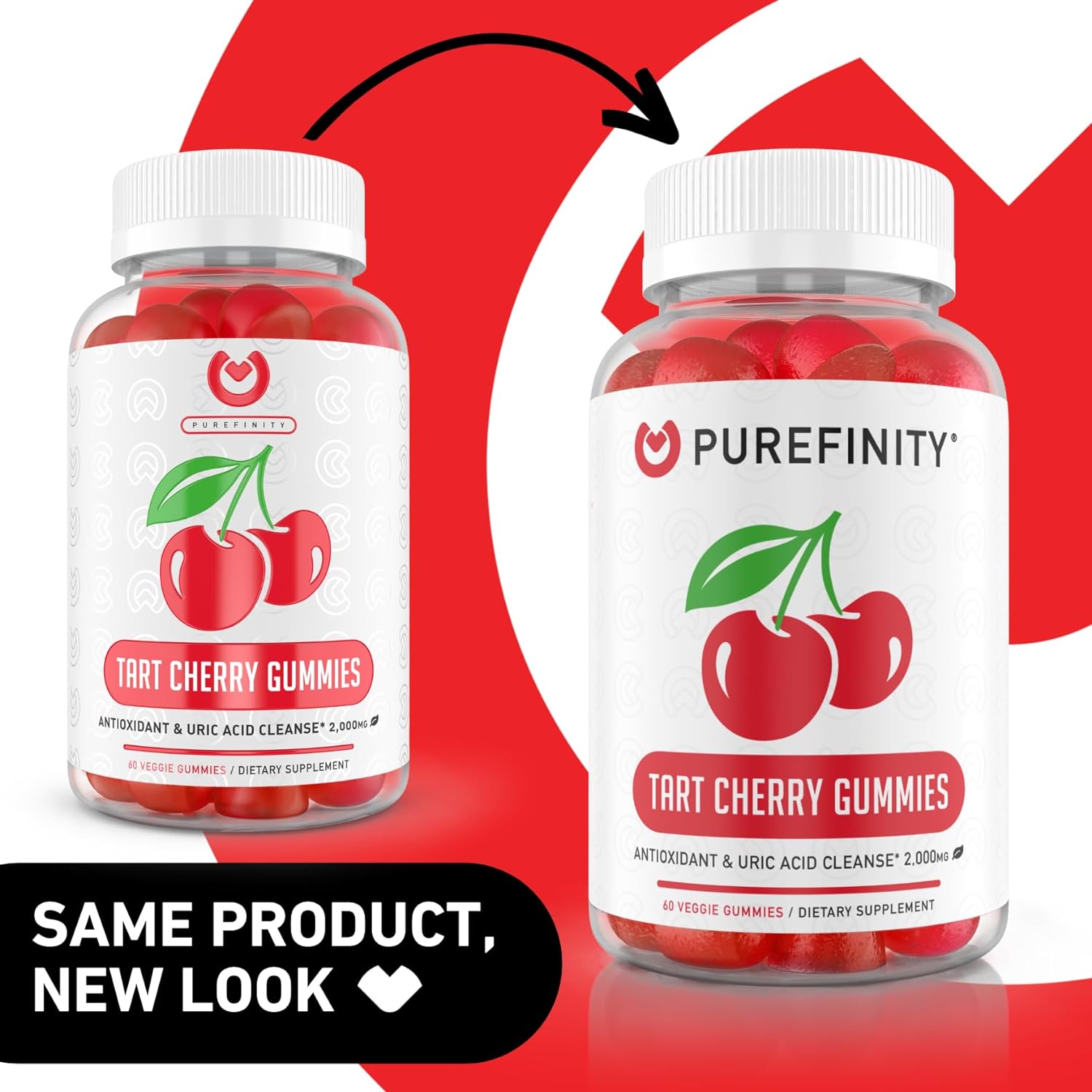 Joint Comfort – PUREFINITY's Tart Cherry Gummies provide some of the same benefits as Tart Cherry juice without the bitter aftertaste!Best Value & Maximum Strength – Unlike many of our competitors, Purefinity provides the highest & most quality dose of Tart Cherry. Each serving contains 2000mg of Tart Cherry Extract from a potent 10:1 extractStrong Antioxidant Support – Polyphenols in tart cherries have more antioxidants than just about any other food. Their anthocyanin content in particular is thought to help protect your muscles from oxidative damage caused by a high-intensity workoutHigh-Quality Guarantee – Our Tart Cherry Extract is carefully formulated in an FDA Registered facility following strict (GMP) Good Manufacturing Practice standards. It’s Non-GMO, Gluten Free, Soy Free, Vegetarian Friendly, Third Party Tested, Lab Verified, and made in the USA. You get exactly what it says on the bottle and nothing lessPUREFINITY Lifetime Guarantee – All of our products are backed by our lifetime guarantee - If for any reason you aren’t fully satisfied, just let us know and we'll refund your entire purchase with no hassles. The PUREFINITY Guarantee is a sign of how confident we are in the superior quality and effectiveness of our products. Order with confidence - we've got you covered