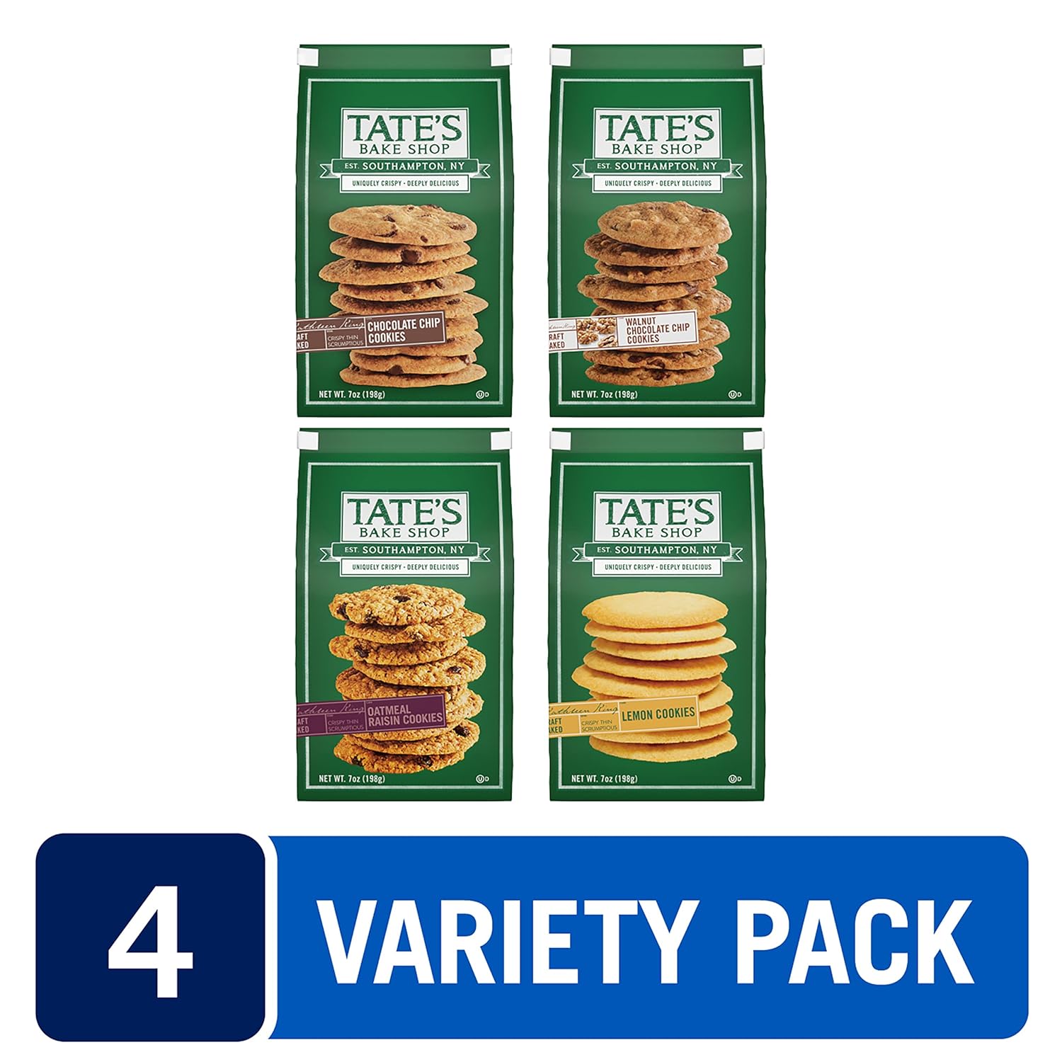 Tate'S Bake Shop Cookies Variety Pack, Oatmeal Raisin Cookies, Chocolate Chip Cookies, Lemon Cookies & Chocolate Chip Walnut Cookies, 4 - 7 Oz Bags