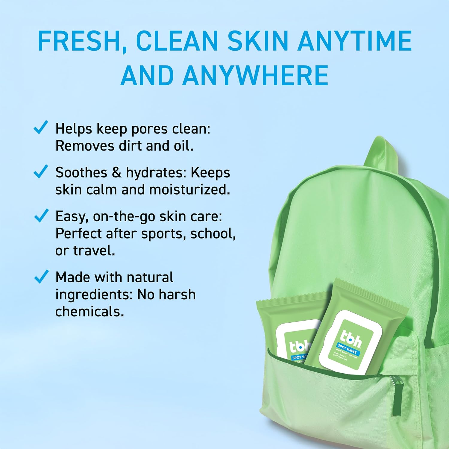 About this item Teen Face wipes for Girls and Boys : Kids and teens want one thing……fun. So, if you want your kids and teens to start practicing good hygiene, then you need a skin care product that they WANT to use. A face wash that is, well….fun Skin Care for Kids : TBH Spot Face Cleanser for kids and teens with .5% salicylic acid that helps penetrate the skin to dissolve dead skin cells that can clog pores. Combined with natural skin care ingredients like witch hazel & aloe, this facial cleanser exfoliates, removes impurities, and hydrates skin. Pair with our Spot Wash for the ultimate clean Free from all the yucky stuff: no harsh chemicals or preservatives. Paraben free, gluten free, cruelty free, phthalates free. We only use honest, good-for-you ingredients great for sensitive skin and all skin types Cleanse Oily Skin: Our gentle spot face wipes helps to manage acne without the redness & irritation that is sometimes caused by harsh chemicals.Willow bark used to clear acne prone skin. Also jojoba helps regulate oil production as well as help soothe and moisturize From the makers of Fairy Tales Hair Care. The #1 brand of salon quality hair care for kids since 1999. TBH Kids personal care products consist of natural kids deodorant, Gentle & Spot Face Wash, Body Wash & Lotion, Shampoo and Conditioner to help control oily hair, plus Gentle & Spot Cleansing Wipes. TBH Kids personal care products - teaching kids and tweens that good habits start early See more product details,Teen Face wipes for Girls and Boys : Kids and teens want one thing……fun. So, if you want your kids and teens to start practicing good hygiene, then you need a skin care product that they WANT to use. A face wash that is, well….fun,Skin Care for Kids : TBH Spot Face Cleanser for kids and teens with .5% salicylic acid that helps penetrate the skin to dissolve dead skin cells that can clog pores. Combined with natural skin care ingredients like witch hazel & aloe, this facial cleanser exfoliates, removes impurities, and hydrates skin. Pair with our Spot Wash for the ultimate clean,Free from all the yucky stuff: no harsh chemicals or preservatives. Paraben free, gluten free, cruelty free, phthalates free. We only use honest, good-for-you ingredients great for sensitive skin and all skin types,Cleanse Oily Skin: Our gentle spot face wipes helps to manage acne without the redness & irritation that is sometimes caused by harsh chemicals.Willow bark used to clear acne prone skin. Also jojoba helps regulate oil production as well as help soothe and moisturize,From the makers of Fairy Tales Hair Care. The #1 brand of salon quality hair care for kids since 1999. TBH Kids personal care products consist of natural kids deodorant, Gentle & Spot Face Wash, Body Wash & Lotion, Shampoo and Conditioner to help control oily hair, plus Gentle & Spot Cleansing Wipes. TBH Kids personal care products - teaching kids and tweens that good habits start early