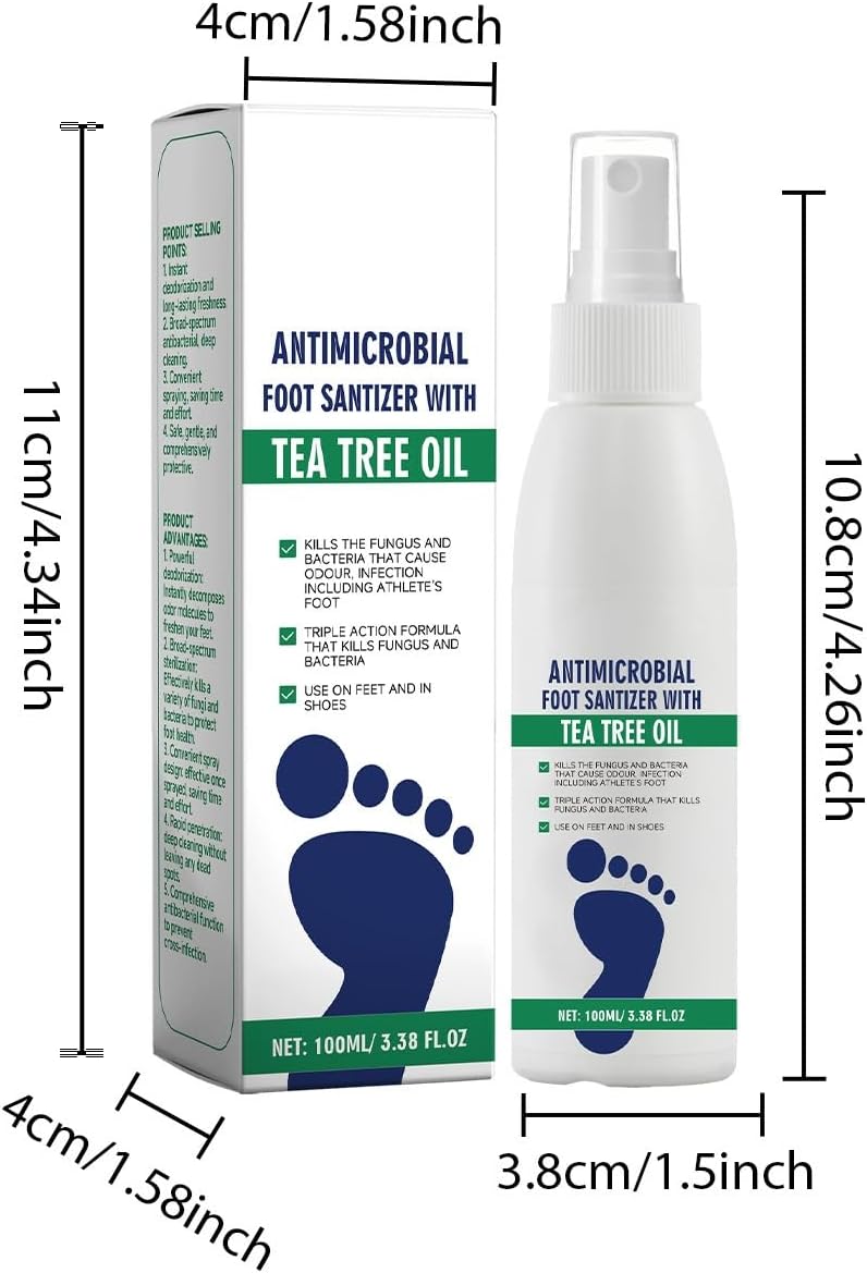 About this item ?Antibacterial Formula:?? Australian Tea Tree Oil + Oregano Oil Complex, effectively inhibits foot bacteria ?Long-Lasting Triple Protection:?? Continuous odor control + deep heel moisturizing + foot crack repair ?Quick-Dry Technology:?? Spray design dries instantly, no stickiness or white residue on socks ?Portable Size:?? Easily fits in pockets/cosmetic bags ?Safety:?? Dermatologically tested, safe for pregnant women and children › See more product details,?Antibacterial Formula:?? Australian Tea Tree Oil + Oregano Oil Complex, effectively inhibits foot bacteria,?Long-Lasting Triple Protection:?? Continuous odor control + deep heel moisturizing + foot crack repair,?Quick-Dry Technology:?? Spray design dries instantly, no stickiness or white residue on socks,?Portable Size:?? Easily fits in pockets/cosmetic bags,?Safety:?? Dermatologically tested, safe for pregnant women and children