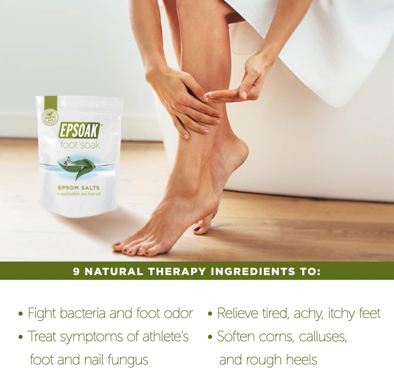 Tea Tree Oil Foot Soak With Epsoak Epsom Salt - 2Lbs (907G) Packaging: Resealable Bulk Bag Our Tea Tree Oil Foot Soak Is Infused With 9 Natural Therapy Ingredients To: Soothe Tired, Sore, Aching, Itchy Feet Leave Feet Feeling Soft, Clean, Fresh And Completely Rejuvenated