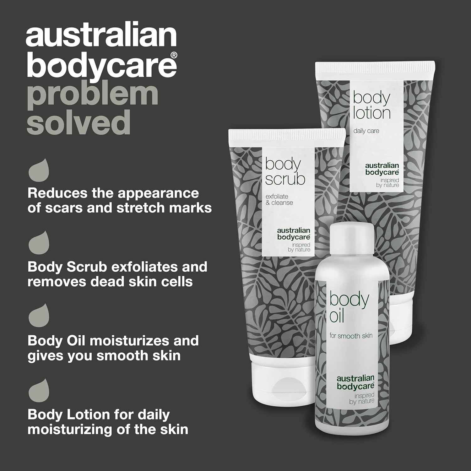About this item ?? HOW TO USE: How often should I use the products Use Body Oil every day. Apply a few drops of oil to the skin and massage in well. Body Lotion is a daily body cream that maintains the skin's optimal moisture level, keeping it healthy and the skin barrier intact. To ensure optimal use of the oil and cream's good ingredients, exfoliate your skin 1-2 times a week with a body scrub. Body Scrub gently removes dead skin cells so that your other care products are absorbed into the skin. ?? HOW TO USE: How often should I use the products Use Body Oil every day. Apply a few drops of oil to the skin and massage in well. Body Lotion is a daily body cream that maintains the skin's optimal moisture level, keeping it healthy and the skin barrier intact. To ensure optimal use of the oil and cream's good ingredients, exfoliate your skin 1-2 times a week with a body scrub. Body Scrub gently removes dead skin cells so that your other care products are absorbed into the skin. ?? PRODUCT INFO: Body Oil is composed of natural oils that ensure the good effects. Almond oil and sunflower oil contribute good vitamins, including vitamin E, which is important for improving stretch marks. Body Lotion is based on Tea Tree Oil and Glycerin, which leaves skin soft. Although Body Scrub exfoliates the skin, it doesn't dry it out - the moisturising ingredient allantoin takes care of that. Tea Tree Oil fights bacteria, while the scrub grains are made from crushed apricot kernels. ?? SUITABILITY We have been developing problem-solving skin care products of superior quality for more than 30 years. We develop all our products using top?shelf ingredients. With regards to quality, we do not compromise. Our product is 100% vegan and contains natural active ingredients. › See more product details,?? HOW TO USE: How often should I use the products Use Body Oil every day. Apply a few drops of oil to the skin and massage in well. Body Lotion is a daily body cream that maintains the skin's optimal moisture level, keeping it healthy and the skin barrier intact. To ensure optimal use of the oil and cream's good ingredients, exfoliate your skin 1-2 times a week with a body scrub. Body Scrub gently removes dead skin cells so that your other care products are absorbed into the skin,?? HOW TO USE: How often should I use the products Use Body Oil every day. Apply a few drops of oil to the skin and massage in well. Body Lotion is a daily body cream that maintains the skin's optimal moisture level, keeping it healthy and the skin barrier intact. To ensure optimal use of the oil and cream's good ingredients, exfoliate your skin 1-2 times a week with a body scrub. Body Scrub gently removes dead skin cells so that your other care products are absorbed into the skin,?? PRODUCT INFO: Body Oil is composed of natural oils that ensure the good effects. Almond oil and sunflower oil contribute good vitamins, including vitamin E, which is important for improving stretch marks. Body Lotion is based on Tea Tree Oil and Glycerin, which leaves skin soft. Although Body Scrub exfoliates the skin, it doesn't dry it out - the moisturising ingredient allantoin takes care of that. Tea Tree Oil fights bacteria, while the scrub grains are made from crushed apricot kernels,?? SUITABILITY We have been developing problem-solving skin care products of superior quality for more than 30 years. We develop all our products using top?shelf ingredients. With regards to quality, we do not compromise. Our product is 100% vegan and contains natural active ingredients