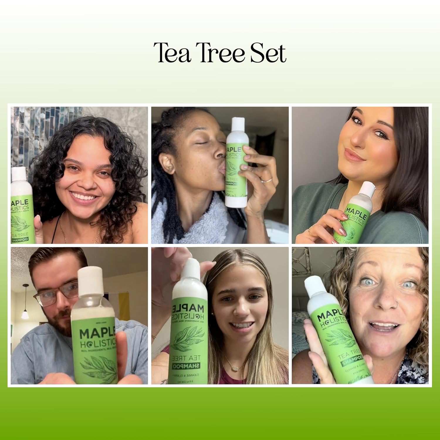 About this item Bye Bye Build Up - Redefine your hair and scalp with our vegan tea tree oil shampoo and conditioner set and see what a tea tree hair and scalp treatment can do to help you look and feel amazing Dandruff Tip - One of the best ways to avoid itchy scalp and flaking is to ditch that artificial dandruff shampoo and conditioner with damaging sulfates and choose gentler more natural formulas Tea Tree Scalp Treatment - Moisturize and cleanse your scalp with our potent oily and dry scalp shampoo and conditioner set tea tree based formula that helps clear up build up and nourishes the hair Clean Formula - Go green with our sodium lauryl sulfate free shampoo and conditioner set made without parabens silicones or phthalates and packed with essential oils for feel good hair care Maple Holistics Quality - We use real ingredients for real results like in lavender oil and shea butter our clarifying shampoo and conditioner set because you deserve the best for your hair care โบ See more product details,Bye Bye Build Up - Redefine your hair and scalp with our vegan tea tree oil shampoo and conditioner set and see what a tea tree hair and scalp treatment can do to help you look and feel amazing,Dandruff Tip - One of the best ways to avoid itchy scalp and flaking is to ditch that artificial dandruff shampoo and conditioner with damaging sulfates and choose gentler more natural formulas,Tea Tree Scalp Treatment - Moisturize and cleanse your scalp with our potent oily and dry scalp shampoo and conditioner set tea tree based formula that helps clear up build up and nourishes the hair,Clean Formula - Go green with our sodium lauryl sulfate free shampoo and conditioner set made without parabens silicones or phthalates and packed with essential oils for feel good hair care,Maple Holistics Quality - We use real ingredients for real results like in lavender oil and shea butter our clarifying shampoo and conditioner set because you deserve the best for your hair care