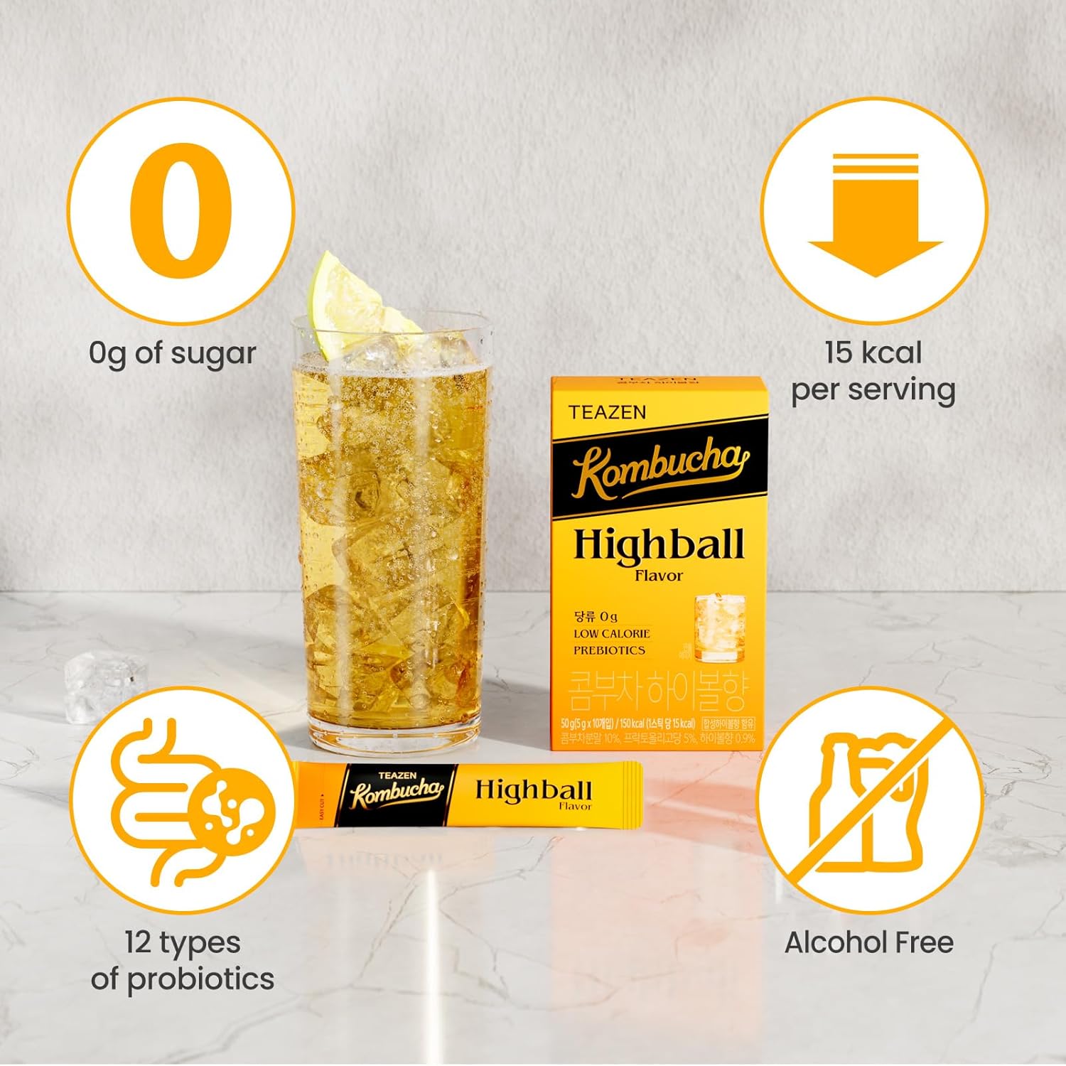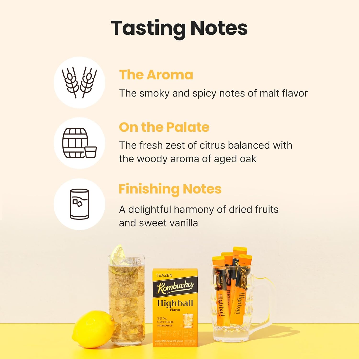 Teazen Kombucha Highball Flavor: A Harmonious Blend Of Smoky And Sweet Malt Flavors With Refreshing Citrus Notes, Enhanced By Teazen Kombucha Smooth Carbonation For A Richer Highball Flavor