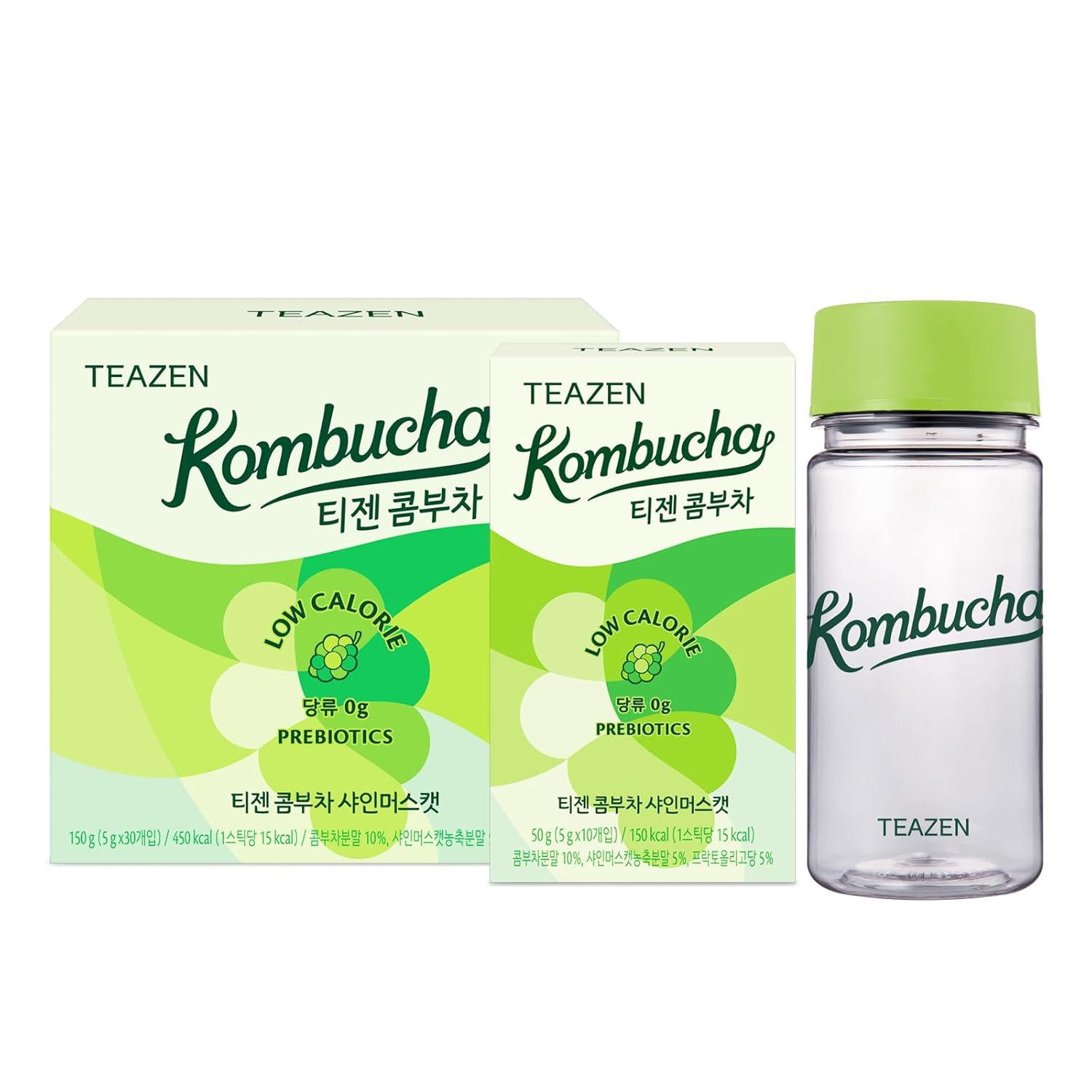 Teazen Kombucha Shine Muscat Flavor Variety Pack With Special Eco Bottle (Kombucha Powder 40 Sticks, Eco Bottle 1Ea X 11.8Oz)