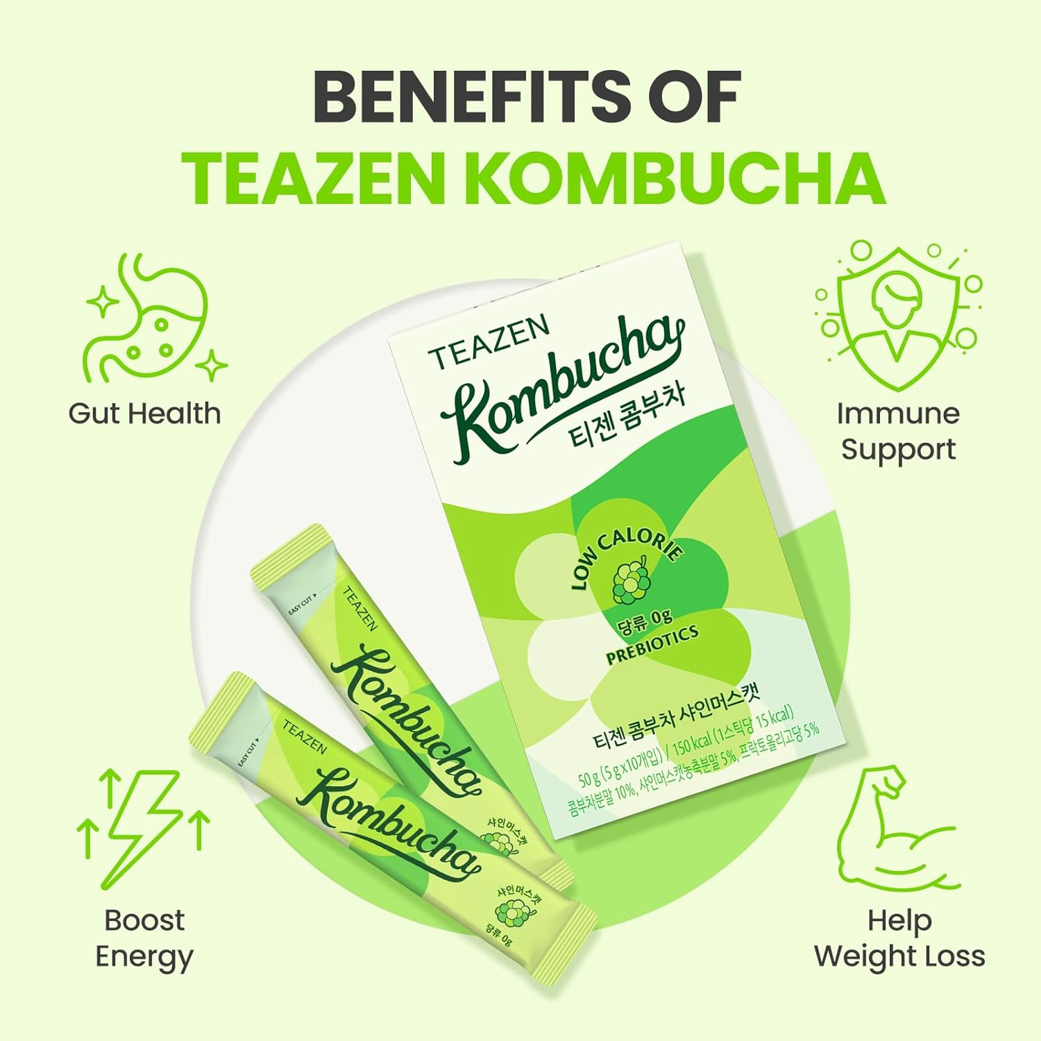 Health Benefits : Enjoy Live Prebiotic, Probiotic, And Freeze-Dried Kombucha (Germany) Produced With Live Lactic Acid Bacteria. Mixed With Real Korea Juice Powder, Teazen Kombucha Contains Antioxidants That Your Body Will Benefit From. Anyone Can Enjoy Kombucha Culture Without The Effort To Ferment Their Own Batch