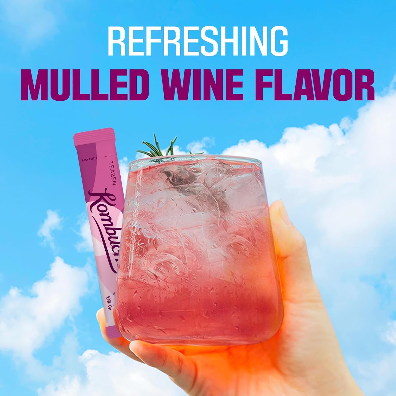 Teazen Kombucha Tea, Cinammon Tea, Hot Or Iced, Zero Sugar, Sparkling Fermented Powdered Mix Beverage From Korea, Live Probiotics & Prebiotics, 10 Sticks, 1.76Oz (Mulled Wine)
