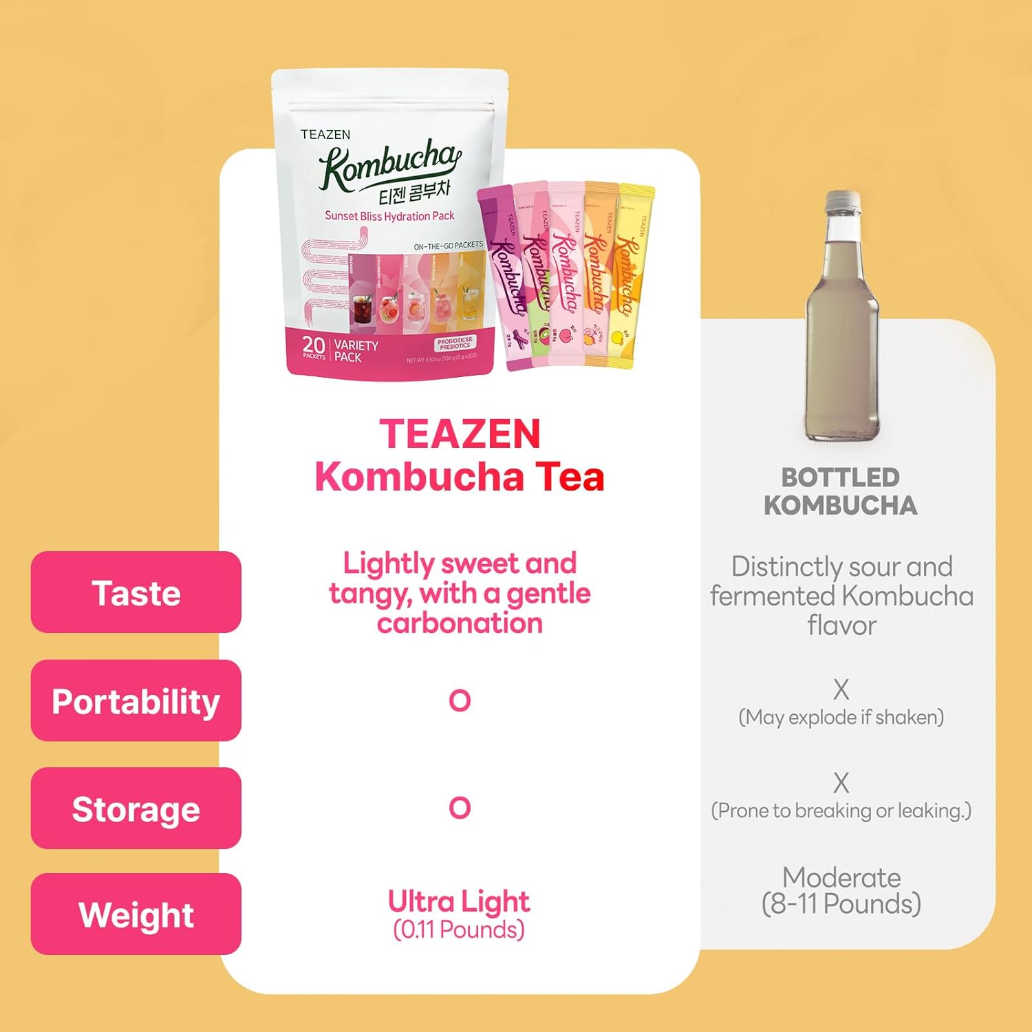 Sunset Bliss Hydration Pack: Introducing The Teazen Kombucha Variety Pack! This Assorted Pack Contains 20 Sticks, With 4 Sticks Of Each Of Our 5 Unique Flavors