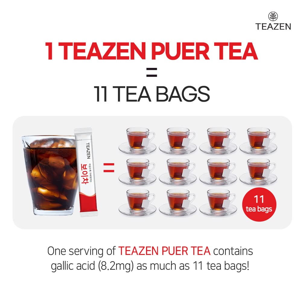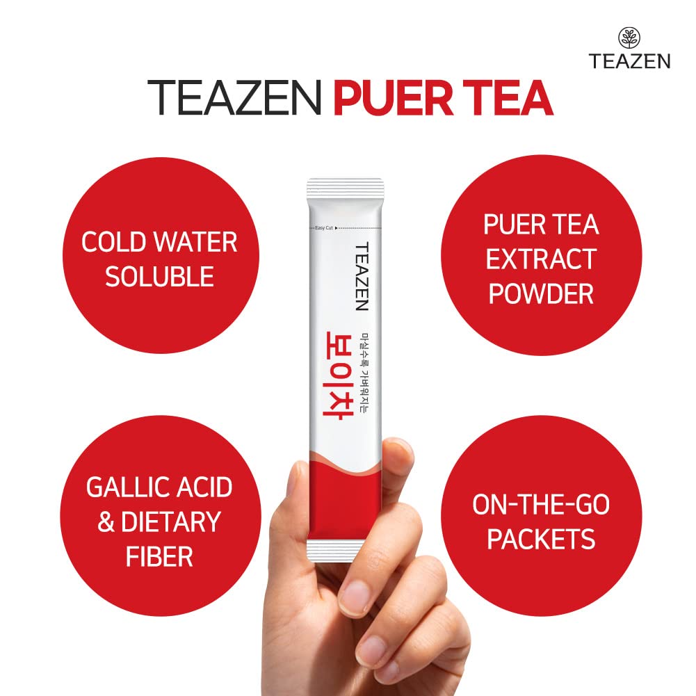 Teazen Puer Tea Drink Mix, Extract Powder Of Fermented Pu-Erh Tea, Hot Or Iced Herbal Tea, Dietary Fiber And Detox, 10 Sticks, 0.63Oz