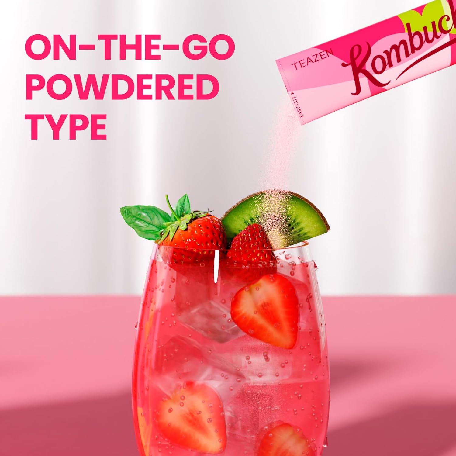 Teazen Strawberry Kiwi Kombucha Tea, Hydration Drink Mix, Sugar Free, Live Probiotics & Prebiotics, 30 Sticks, 5.29Oz