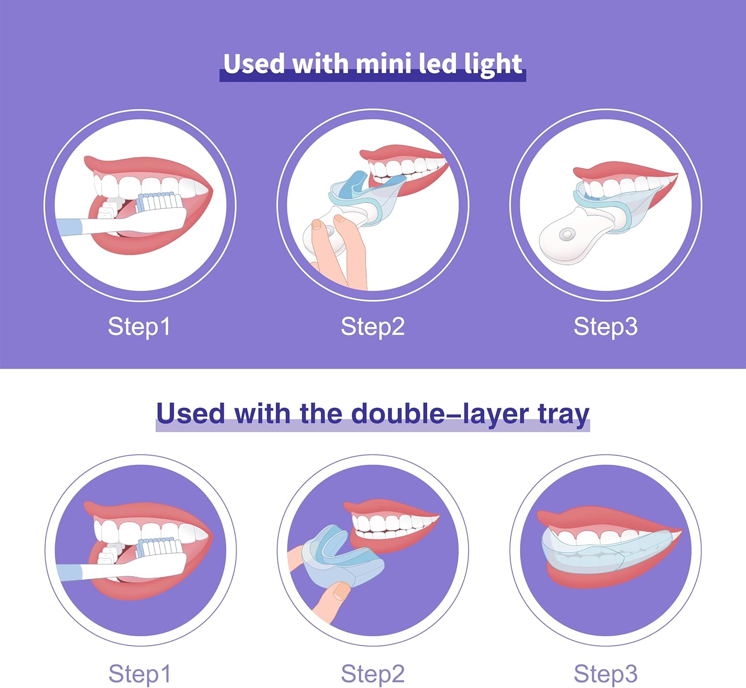 Convenient & Efficient Whitening- Comes with one custom-fit tray for LED light teeth whitener, our home teeth whitening kit will ensure precise gel application, complete coverage, and maximum effectiveness. An extra direct mouth tray will help you directly apply gels to make your teeth whitening time much easier