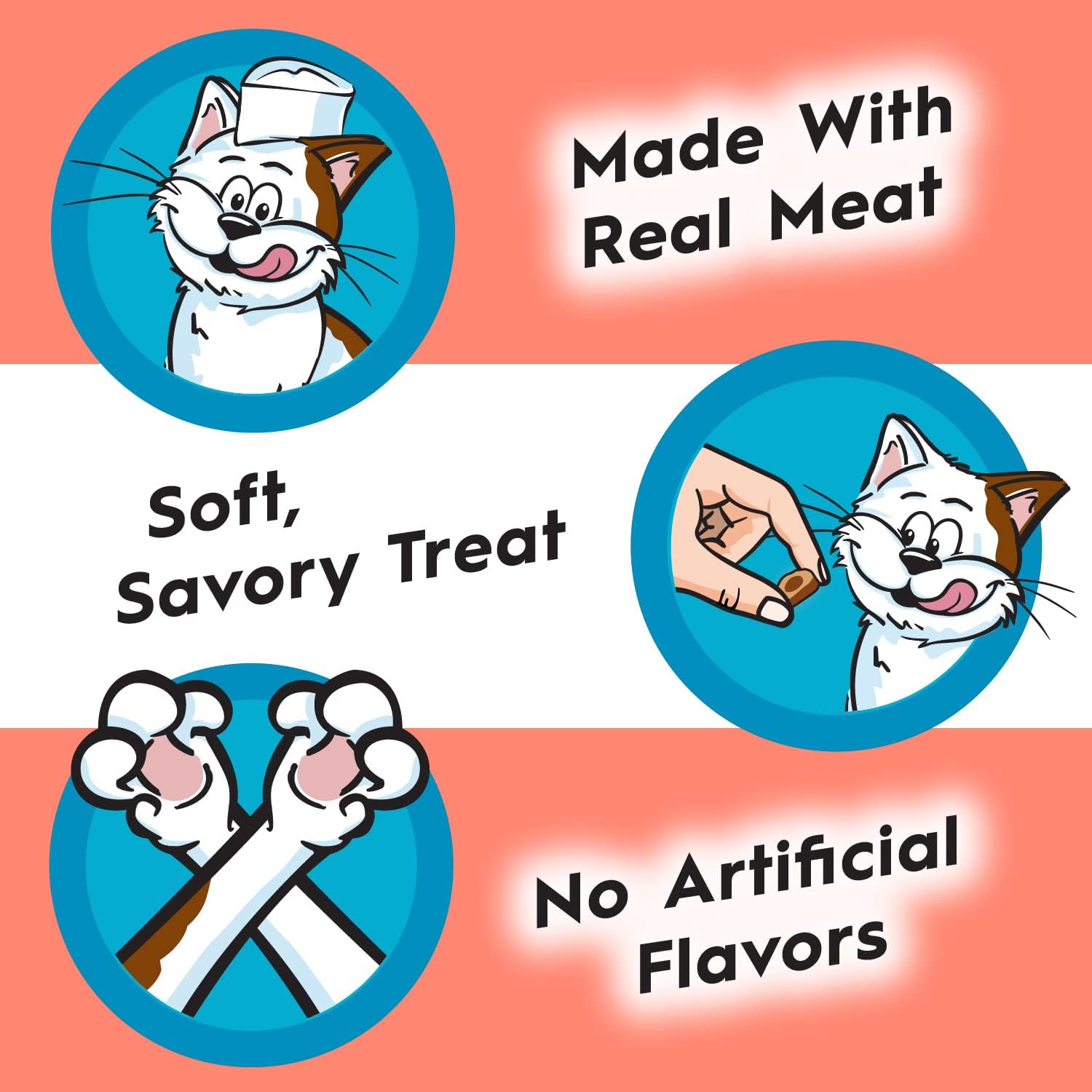 Cats can’t resist a delicious treat, and now you can make treat time even more irresistible with TEMPTATIONS Meaty MixUps soft and savory cat treats! These tempting cat treats deliver the delicious salmon & tuna flavor cats love in a moist, small bite that your furry friend won’t be able to get enough of. TEMPTATIONS Meaty MixUps cat treats make for a fun addition to your cat’s normal feeding routine: you can use them just to treat or as a special cat food topper over regular kibble. Each cat treat is less than 2 calories, has no artificial flavors or fillers, and is formulated without corn, wheat, or soy. With two layers of delicious flavor, we’re paw-sitive your cat will enjoy the delectable taste of TEMPTATIONS Salmon & Tuna Flavor Meaty MixUps soft and savory cat treats!