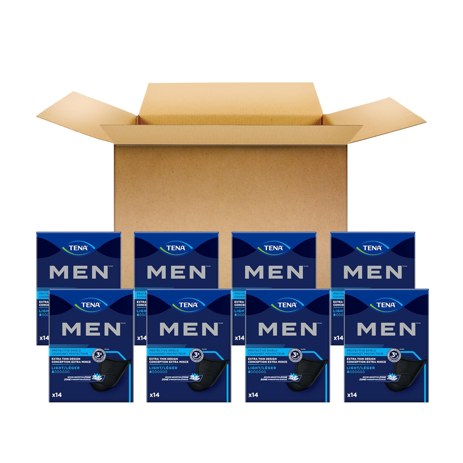 ANATOMICALLY DESIGNED For MEN: Snug, secure fitComfort AND DISCRETION: Soft, cloth-like outer cover and black color for comfort and discretionULTRA-ABSORBENT CORE: For dryness and effective urine leakage protectionAdvanced ODOR Protection to fight odorsADHESIVE STRIPS: For added securityThe Tena Men Incontinence Shield features a thin and discreet cup shape design that provides a secure fit and light bladder leakage protection. Designed to be ultra-thin for comfort and a black color for discretion, this product will protect against light urine drips and dribbles while letting you remain comfortable and secure