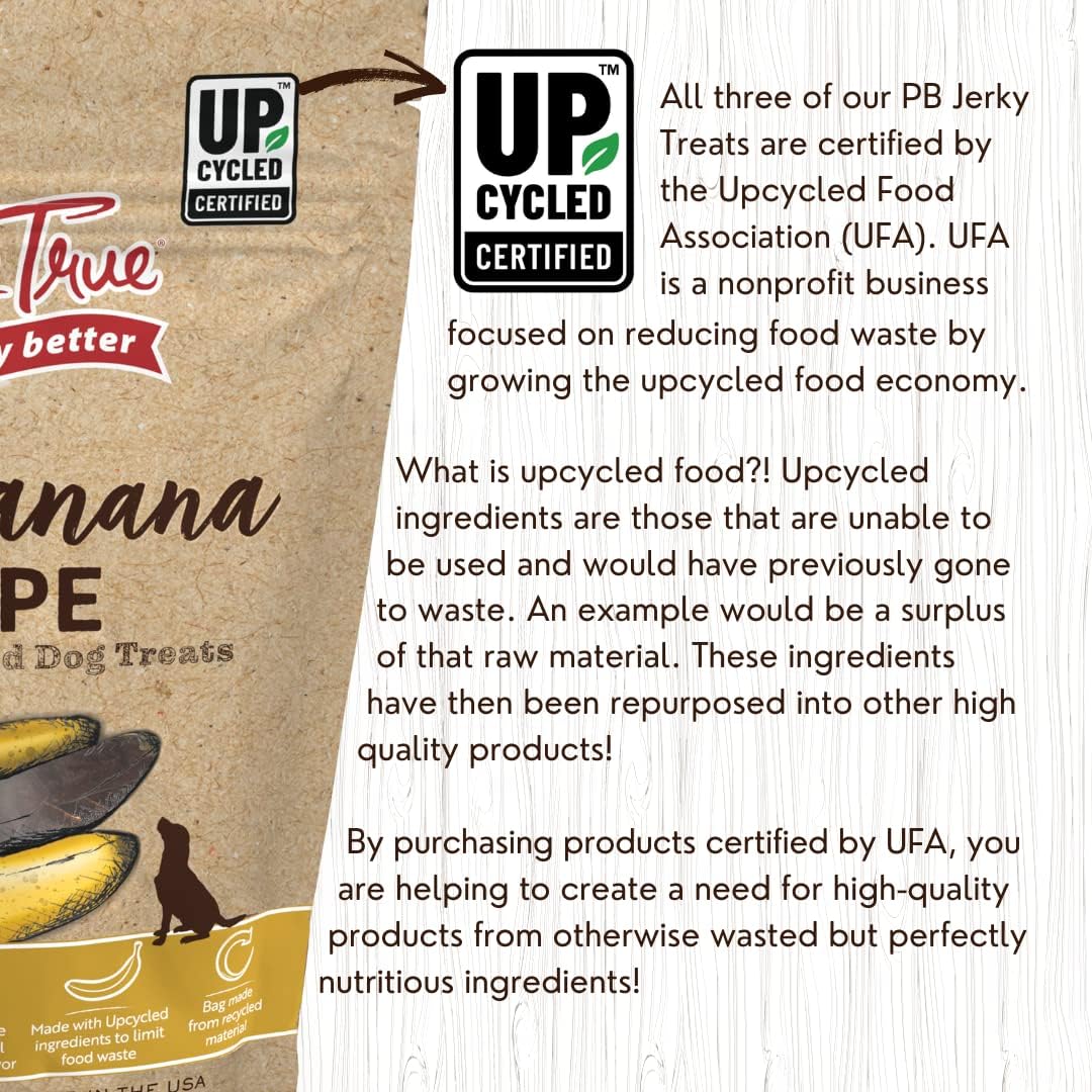Tender & True Pb + Banana Is A Plant-Based And Low-Fat Dog Jerky Treat That Contains All Natural Banana And Premium Ingredients Such As Sweet Potato And Oats! While These Treats Are Smell And Taste Like Real Peanut Butter, They Actually Use A Natural Peanut Butter Flavoring That Is Nut-Free. These Jerky Treats Are Soft And Chewy, Making The Perfect Treat To Break Up For Training Or For Small Breed Pups. This Recipe Is Certified Upcycled To Limit Food Waste. We Took Our Sustainability A Step Further By Utilizing Packaging That Is Made From Post-Consumer Recycled Material