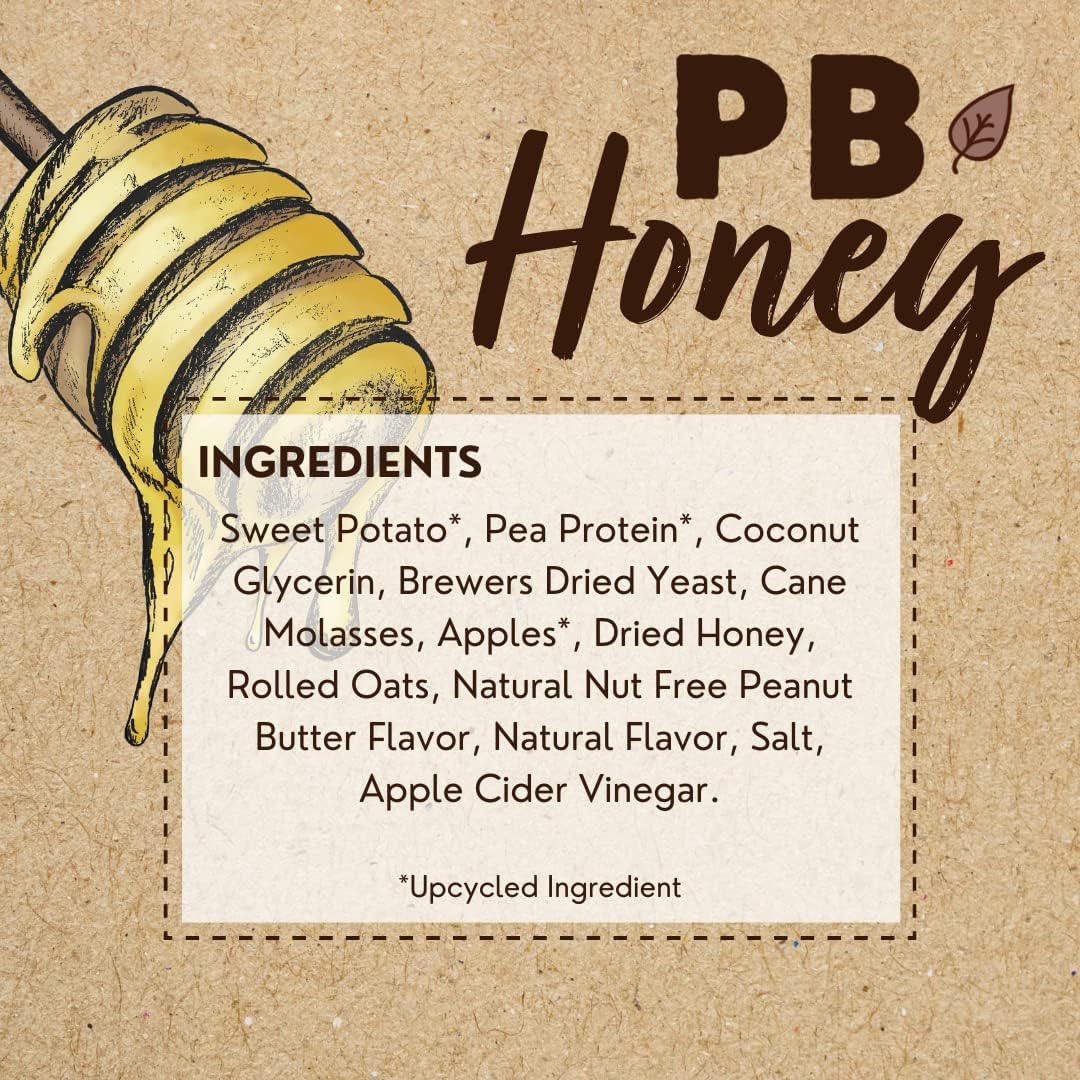 Tender & True Pb + Honey Is A Plant-Based And Low-Fat Dog Jerky Treat That Contains All Natural Honey And Premium Ingredients Such As Sweet Potato And Oats! While These Treats Are Smell And Taste Like Real Peanut Butter, They Actually Use A Natural Peanut Butter Flavoring That Is Nut-Free. These Jerky Treats Are Soft And Chewy, Making The Perfect Treat To Break Up For Training Or For Small Breed Pups. This Recipe Is Certified Upcycled To Limit Food Waste. We Took Our Sustainability A Step Further By Utilizing Packaging That Is Made From Post-Consumer Recycled Material