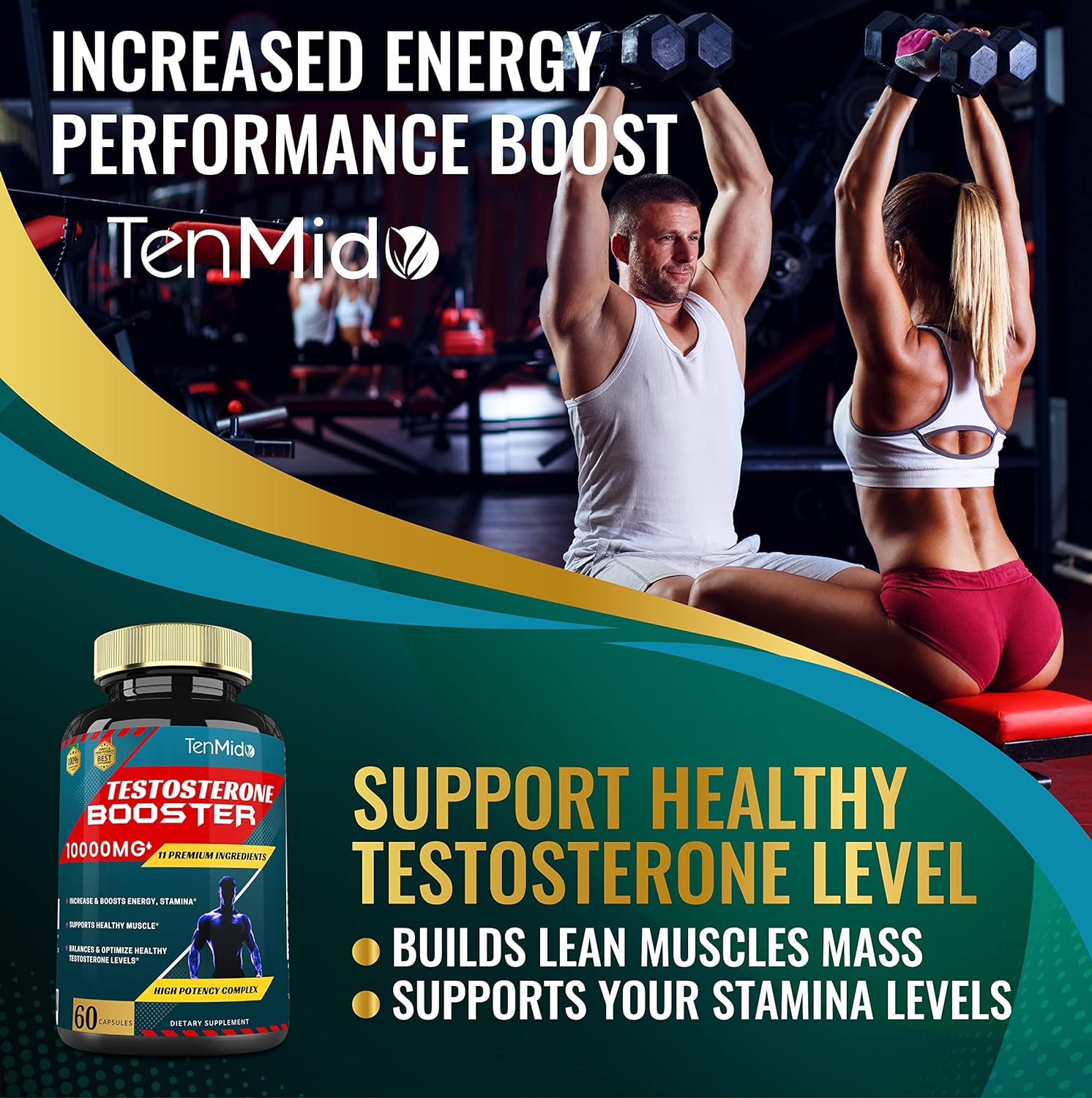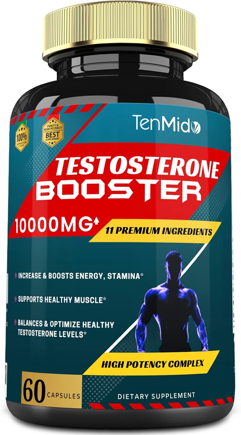 Tenmido Testosterone Booster For Men, Equivalent To 10000Mg - Natural Stamina, Endurance & Strength Supplement - Muscle Building Growth, Increasing Performance, Boosts Energy