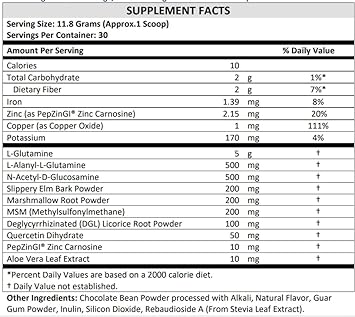 Terra Origin Healthy Gut Chocolate | 30-Servings With L-Glutamine, Zinc, Glucosamine, Slippery Elm Bark, Marshmallow Root And More!