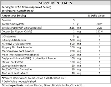 With PepZinGI(R) (Zinc Carnosine) - clinically proven to alleviate stomach discomfort, heartburn, bloating and crampsSupports a wide range of digestive needs while helping to support natural immunity5 calories per serving, 1 carb, Gluten Free, Dairy Free, Soy Free, Made in the USANon-GMO, no sugar, naturally sweetened with Stevia