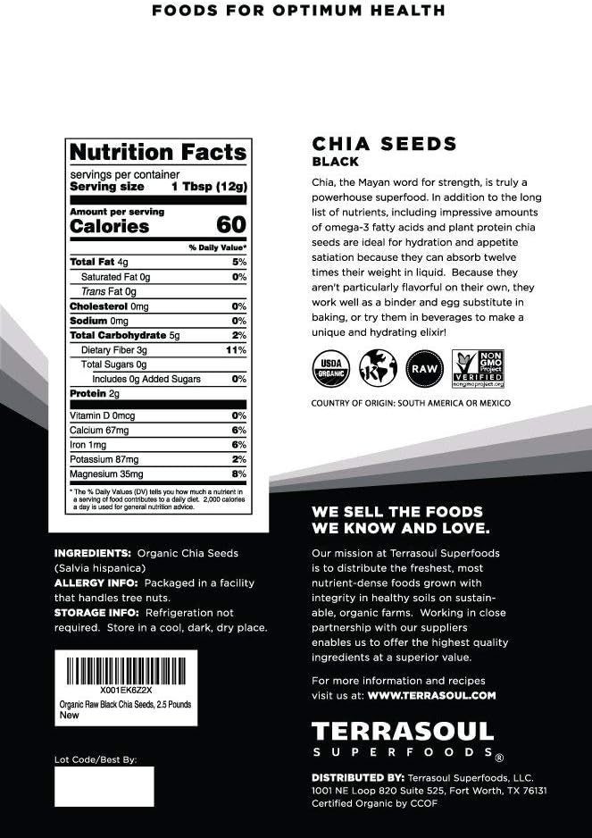 Terrasoul Superfoods Organic Black Chia Seeds, 2.5 Pounds, Nutrient-Packed Superfood For Energy, Puddings, Smoothies, And Baking
