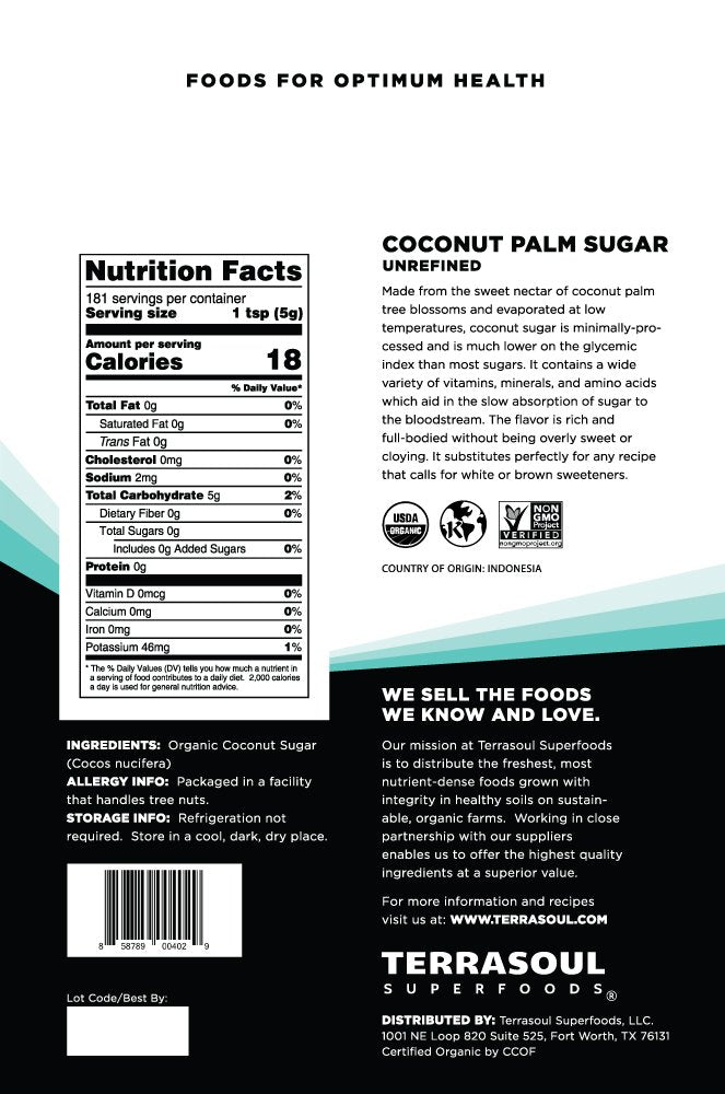 Terrasoul Superfoods Coconut Palm Sugar, 32 Ounces