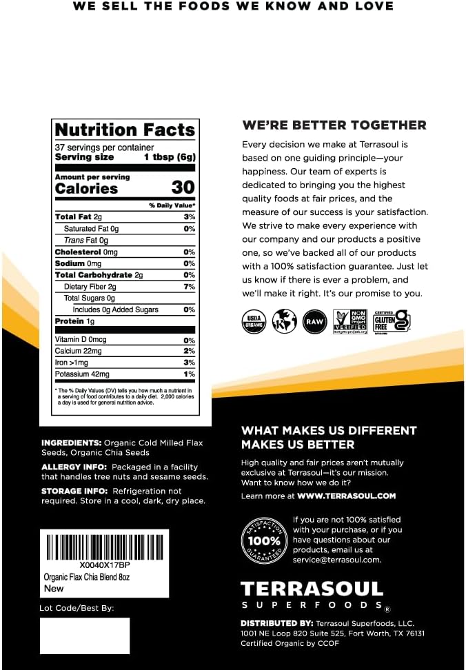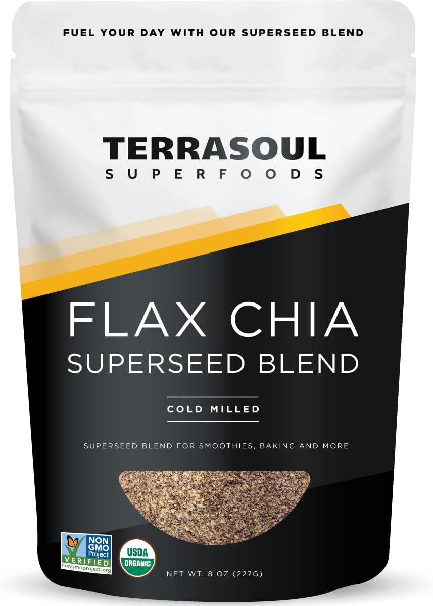 Terrasoul Superfoods Organic Flax Chia Blend, 8 Oz - Cold Milled Flax | Chia Seeds | Superseed Boost For Energy & Wellness