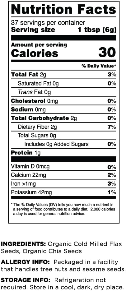 Elevate Your Wellness Journey With Our Organic Flax Chia Blend, A Nutrient-Packed Powerhouse That Combines The Goodness Of Cold Milled Flax Seeds And Whole Chia Seeds In One Convenient Package! Sourced From Premium Organic Farms And Carefully Blended For Optimal Nutrition, This Versatile Superfood Blend Is A Must-Have Addition To Your Pantry. Packed With Essential Omega-3 Fatty Acids, Fiber, Protein, And Antioxidants, Our Flax Chia Blend Offers A Myriad Of Health Benefits To Support Your Active Lifestyle. Whether You Sprinkle It Over Your Morning Smoothie, Yogurt, Oatmeal, Or Bake It Into Your Favorite Recipes, Our Blend Adds A Nutritious Boost To Any Meal